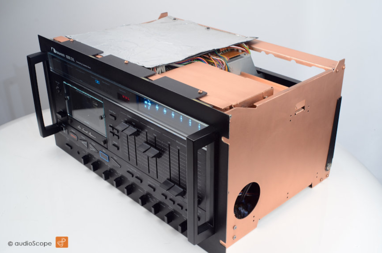 Да могли тупо из баллончика покрасить. Есть такие срециальные краски для покраски внутри пластиковых корпусов для уменьшения ЭМИ. Пользовался такой, именно медной.