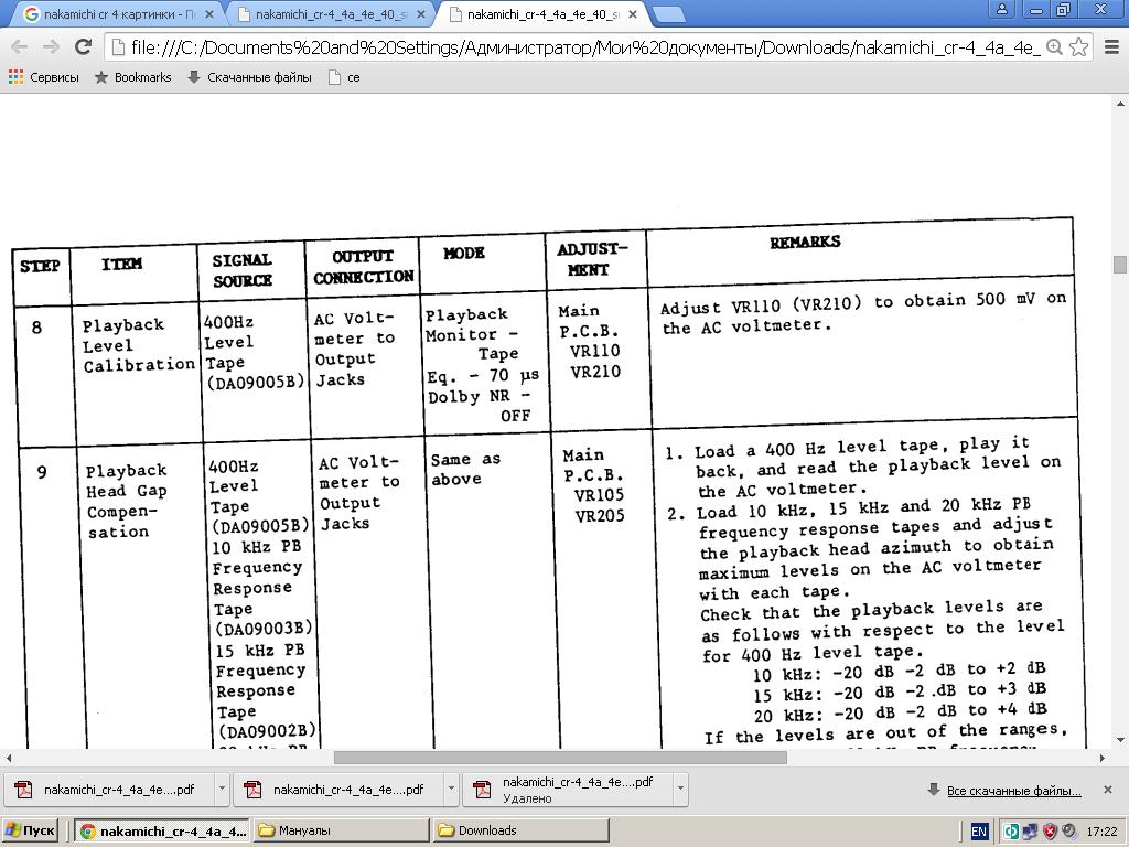 Смотрим картинку 2. В п.8 написано установить уровень 500мВ при воспроизведении. Как мы выяснили выше, это соответствует 200нвбм ДИН (или уверенному горению сегмента 0дБ). Далее мы смотрим на морду магнитофона и видим, что шкала такая же, как и у второго поколения, значок Долби отсутствует, просто 0дБ. 0дБ у всех Наков должен совпадать!!! Значит производитель использует кассету с 200нвбм.