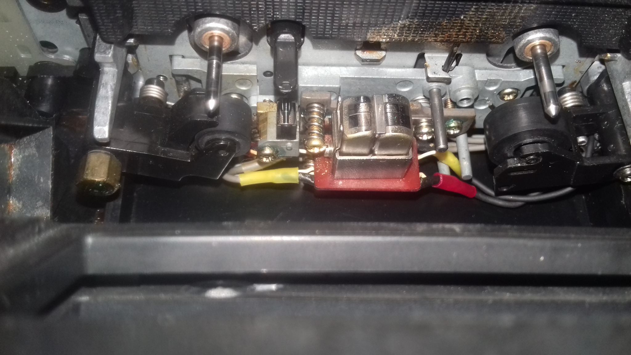 не делал никаких апов по Никитину 1. Заменил блок подмотки перемотки - поставил от 501 2. Если рассмотрите на фото - гайку подстройки высоты свернул проводил спецоперацию срезал остатки резьбы внешней сверлил опору стойки и нарезал резьбу М1,5 чтобы поставить регулировочный винт с шайбой фиксирующей |