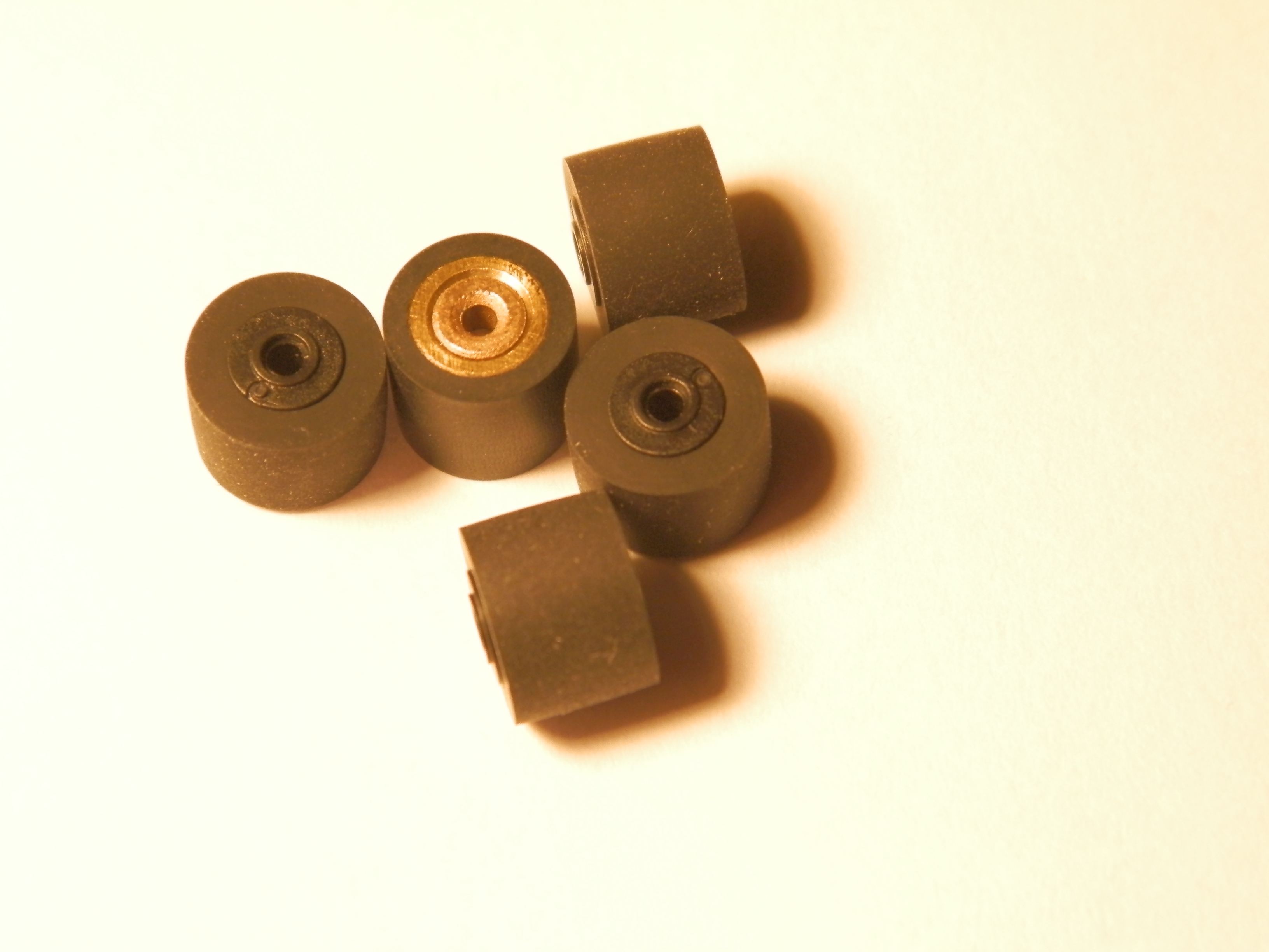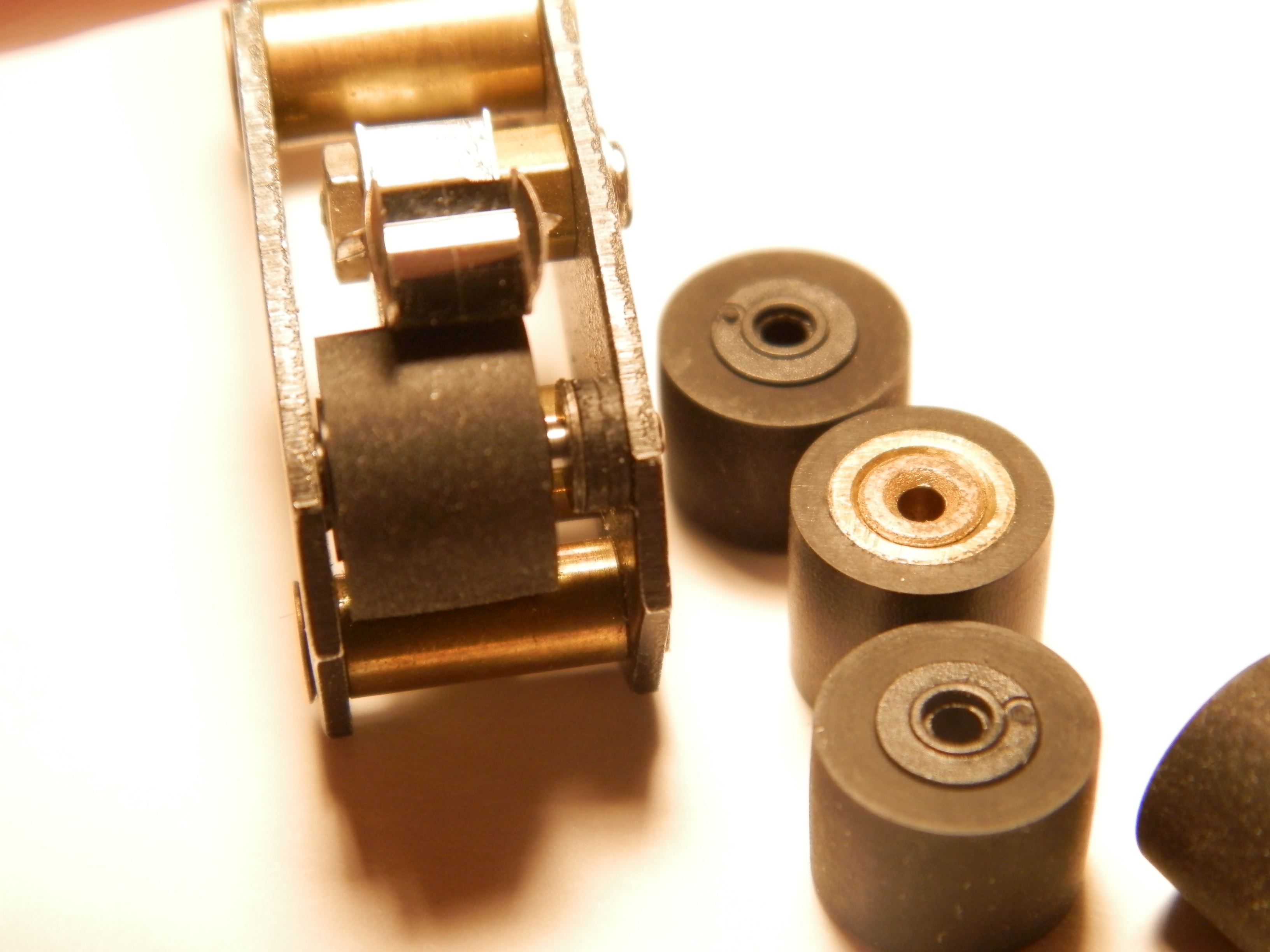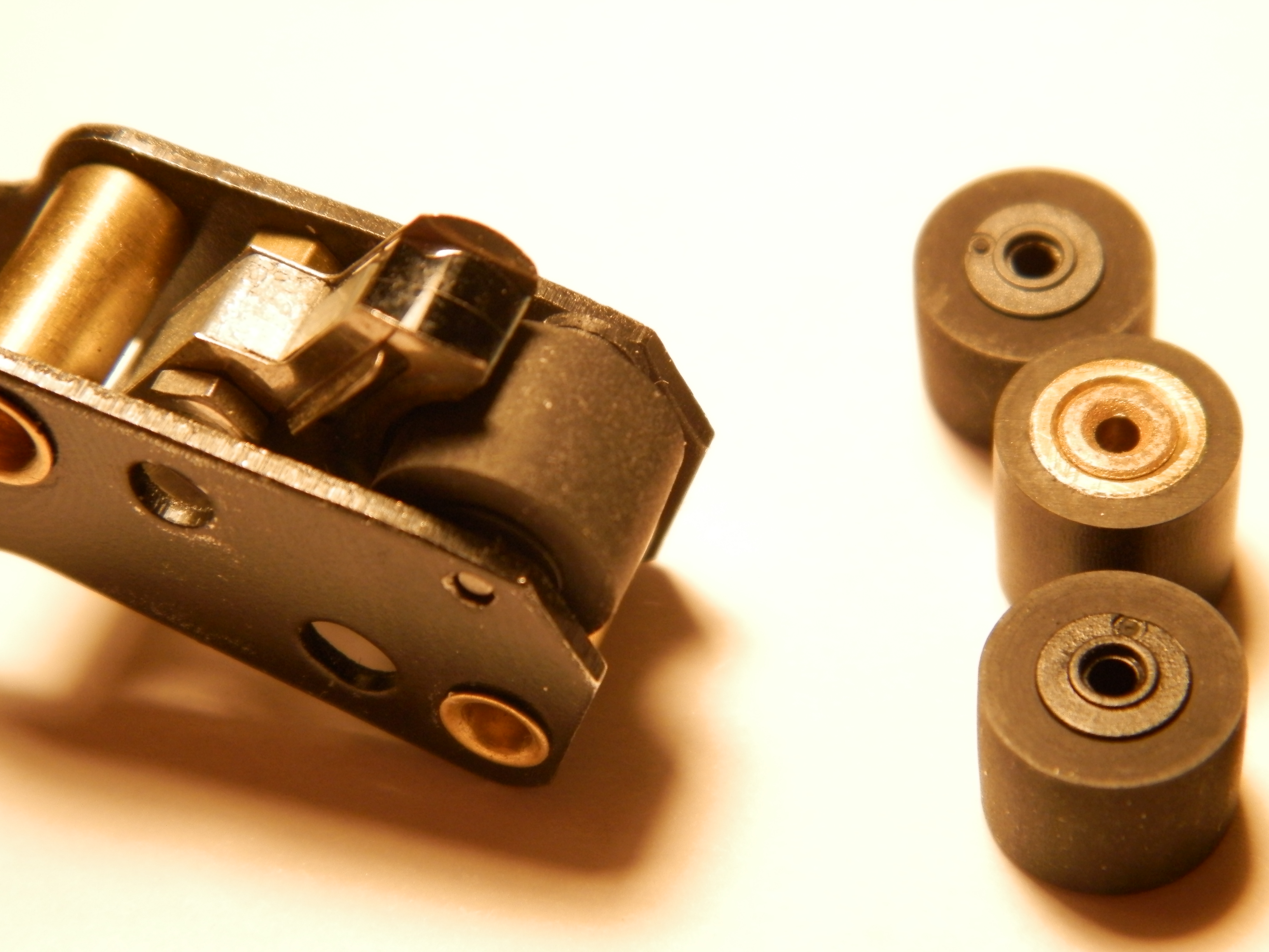 Шайбы надо с обоих сторон подкладывать, чтобы ролик по центру был.