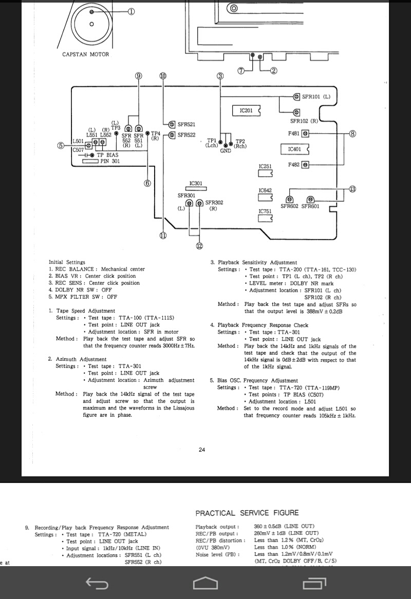 Судя по манулу ТТА-200 соответствует и TCC-130(ABЕX как на фото у Магнитофоныча) и при её воспроизведении нужно установить 388мВ не на линейном выходе, а в контрольных точках TP1, TP2. На линейном выходе должно получитца 360мВ. Ну а 350мВ в начале в спецификации, это так средняя темпиратура по больнице.