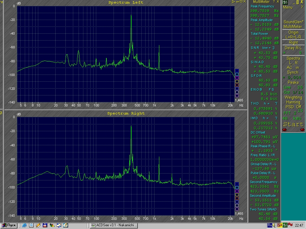 Вот искажения на ленте 1 типа на 0дБ, 0,67% (-12дБ карты соответствует наконулю 200нвбм).