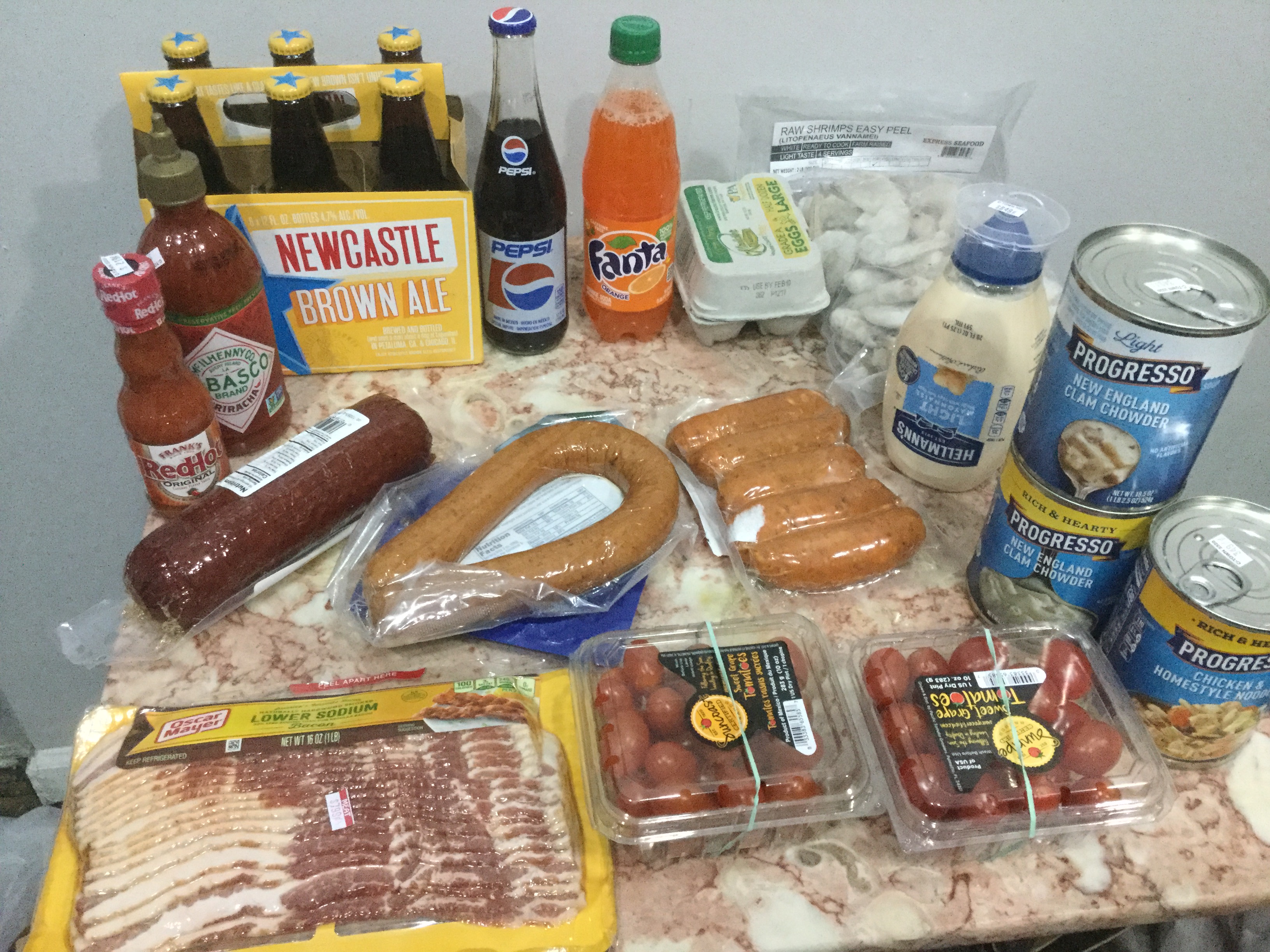 Зашёл в супермаркет. Немного закупился. На столе всё, что взял. Обошлось $91.07. Можно прикинуть, дорого это или нет.