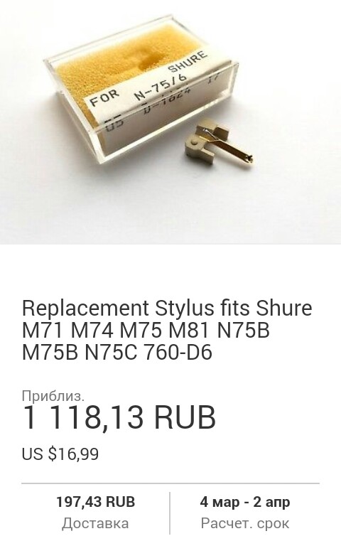 Alexey5005 Горелов написал: Коломас,я вспомнил,не с Ортофона,а с Телефункина Я вот что нашёл. Иглу Shure новую