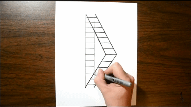 тогда когда лист прямой как стол. поэтому каоандаш катится как будто сквозь букву М по абсолютно прямому листу.