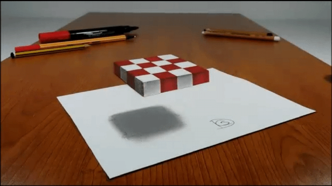 Дяденька прикрепил кубик к раме(нарисованной)к одной из сторон недвижимо.