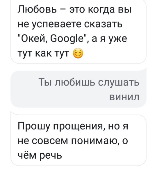 Задал пару вопросов подруге Алисы... в том числе и о виниле. с чувством юмора все в порядке. в вопросах о виниле полный ноль.