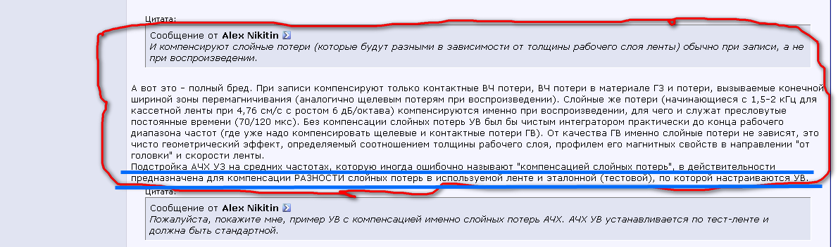 Про ошибочную терминологию насчет "недокомпенсации", это Сергей про меня, но сути это не меняет - если все скомпенсировано в УВ, то в УЗ на СЧ все должно быть ровно, а подъемы на СЧ определяются разностью реальной ленты и кривой относительной АЧХ (или по-простому измерительной ленты для соответствующего типа).
