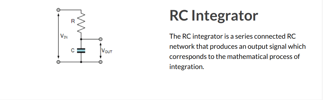 А если в широком смысле того что это простой НЧ фильтр: https://www.electronics-tutorials.ws/rc/rc-integrator.html