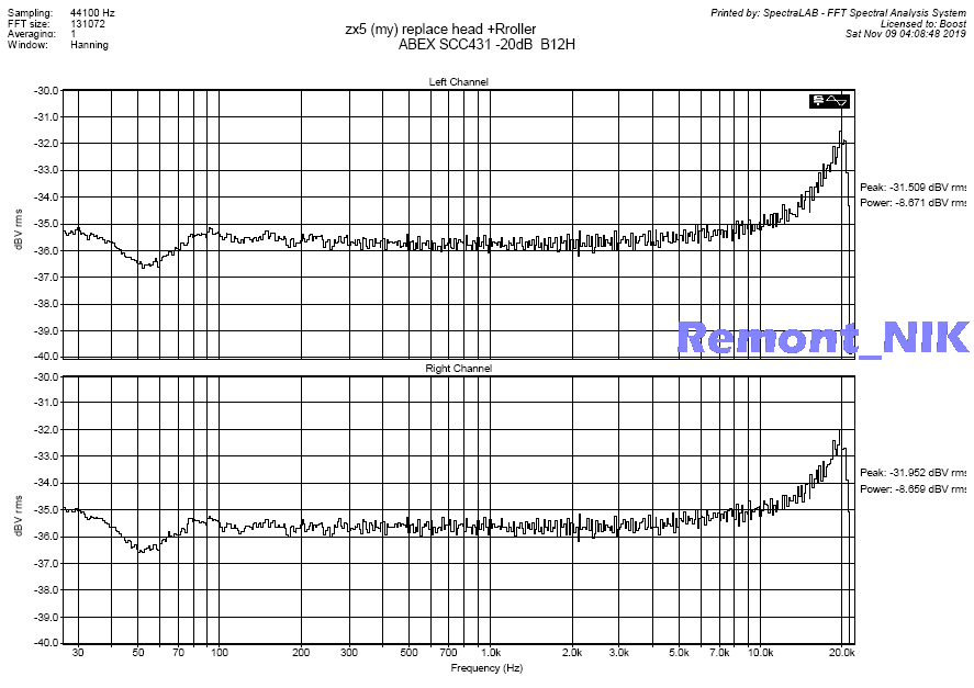 Nak zx5 + ABEX scc431 -20dB pb after recording сквозная АЧХ на типовой ленте type I/ normal position