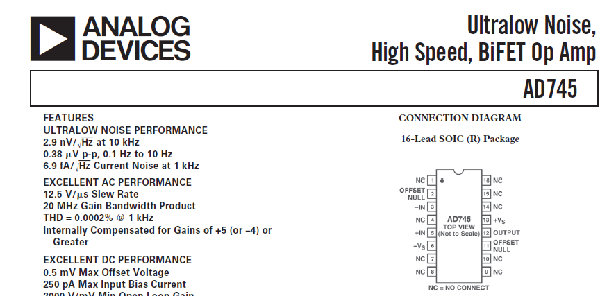 (прикрепил картинку АД745- токовый шум фемтоамперы - десять в минус 15ст!!!)
