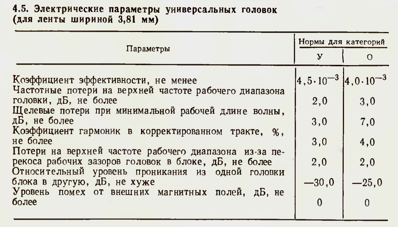 нашел интересную таблицу в книге А.М.Почепы "Магнитная звукозапись"