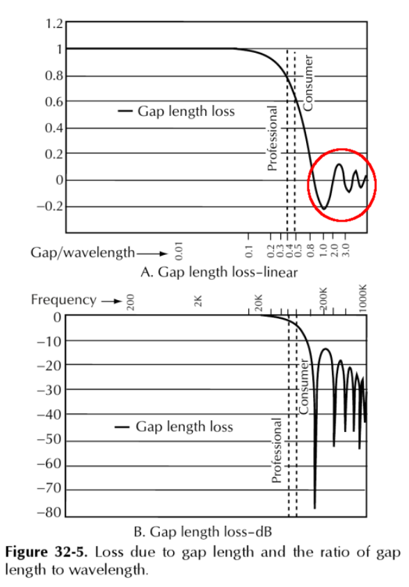 Поясняю о каких шумах идёт речь, раз у профильных возникла необходимость Речь идёт о шумах записанных током подмагничивания, которые потом считываются головкой воспроизведения. Олег, помните моё видео где Sony воспроизводит сигнал до 40 кГц? Смотрите график из книжки У Накамичи частота подмагничивания 105 кГц. Значит при скорости 4.76 см/сек длина волны этой частоты на ленте будет равна 0.45(3) микрона (три в периоде если забыли). ГВ имеет зазор примерно 0.6 мкм. Соотношение зазора к длине волны в этом случае будет примерно 1.32. Уровень шумов в красном кружочке на графике соответствующее этому соотношению (1.32) найдите сами Дальнейшее повышение частоты подмагничивания имеет смысл только для ферритовых и аморфных голов. Кристаллой как и пермаллой достаточно шумный - нет смысла. |