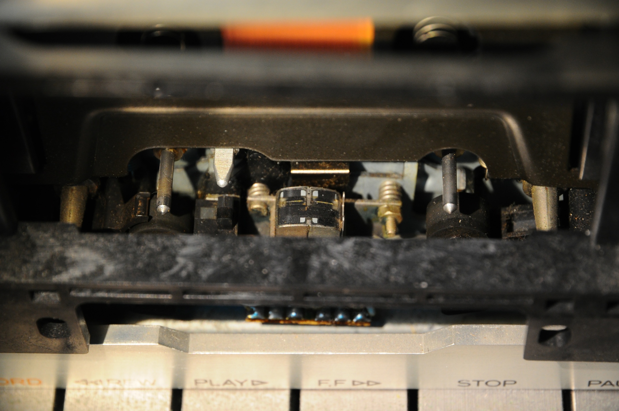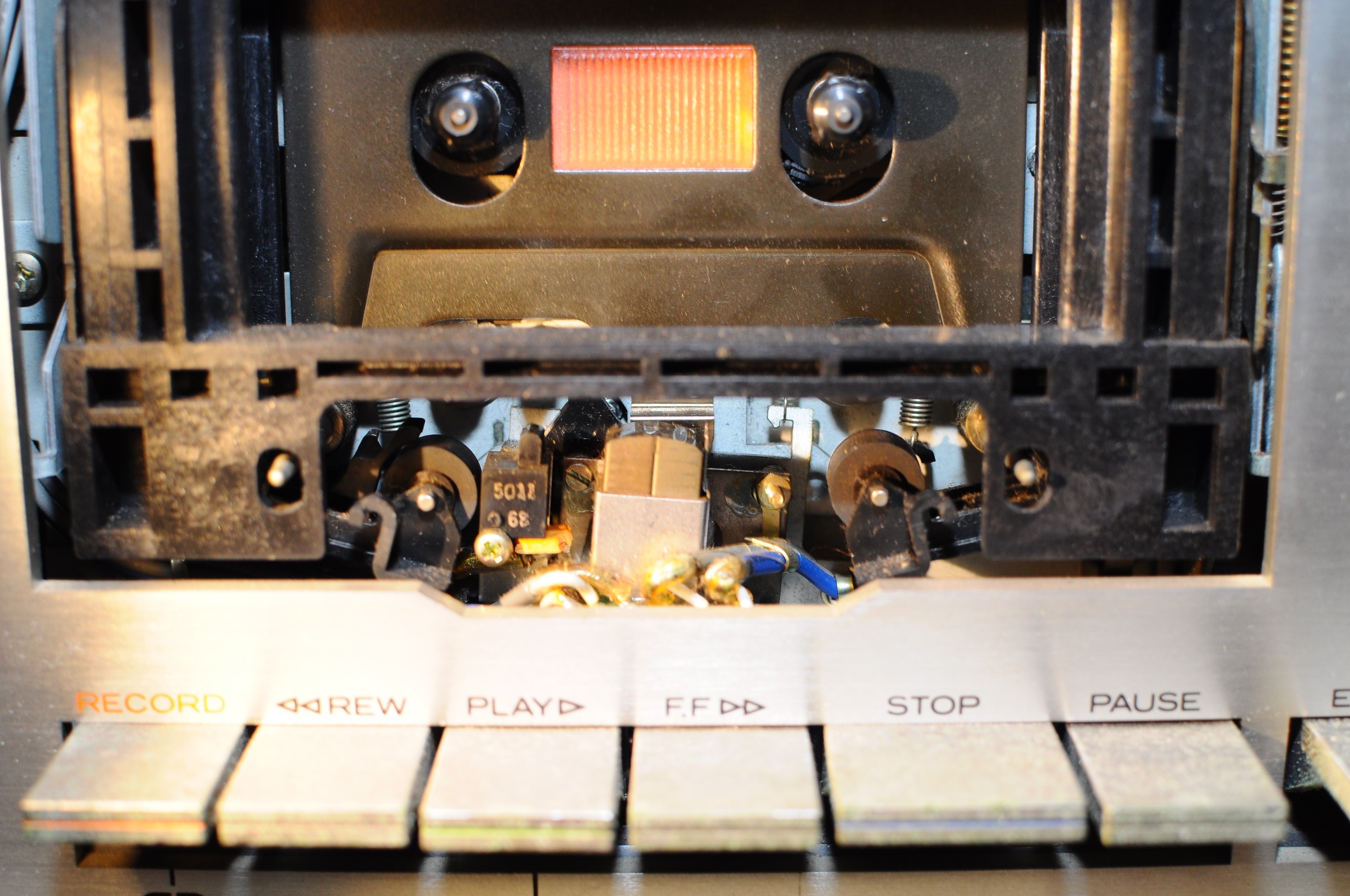 Приехала такая, вроде с виду невзрачная замарашка. Была выкуплена из японского рабства за 500 (ихних) рублей.  :D Вроде с виду такая серенькая, непонятная, Долбей нет (совсем никаких нет), "глазки" - стрелочки пожгло летнее японское солнышко, видимо трудилась где то на подоконнике. Но стоило мне заглянуть ей под юбку в кассетоприемник, моему взору открылись ферритовая сквозная голова-сендвич и два тонвала. Непростая оказалась "золушка", хоть и "педальная"  :laughter: Ну а я же почувствовала себя доброй феей, будем делать из золушки принцессу.