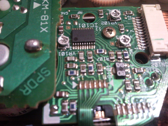 Капля припоя , перемычка , перемыкающая лазер . Это защита от статики , находится , обычно недалеко от рег. резистора или на шлейфе .