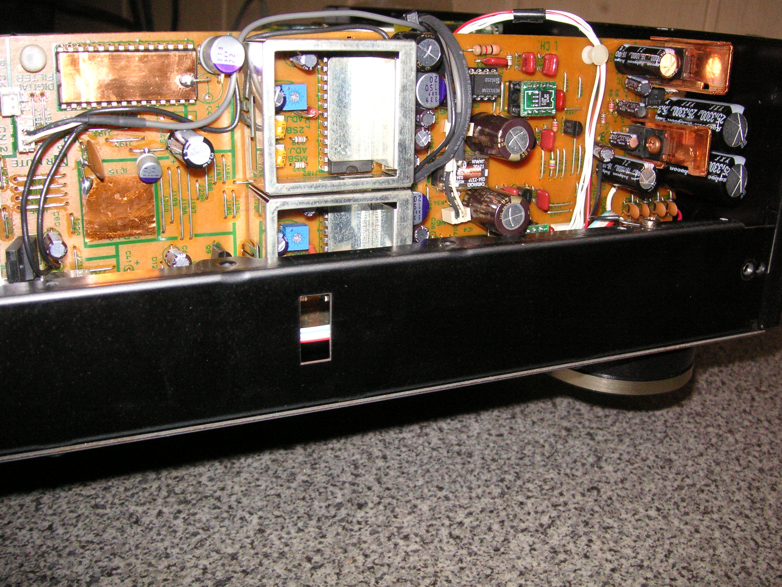 В одном из моих проигрывателей, а именно Denon DCD-3500GL, усиленные трансы вынесены наружу.Смотря на них и решил повторить. Кстати, может есть у кого-нибудь от него СМ, буду очень признателен. Хотелось бы посмотреть некоторые конструктивные решения, тем более те-же РСМ58. |