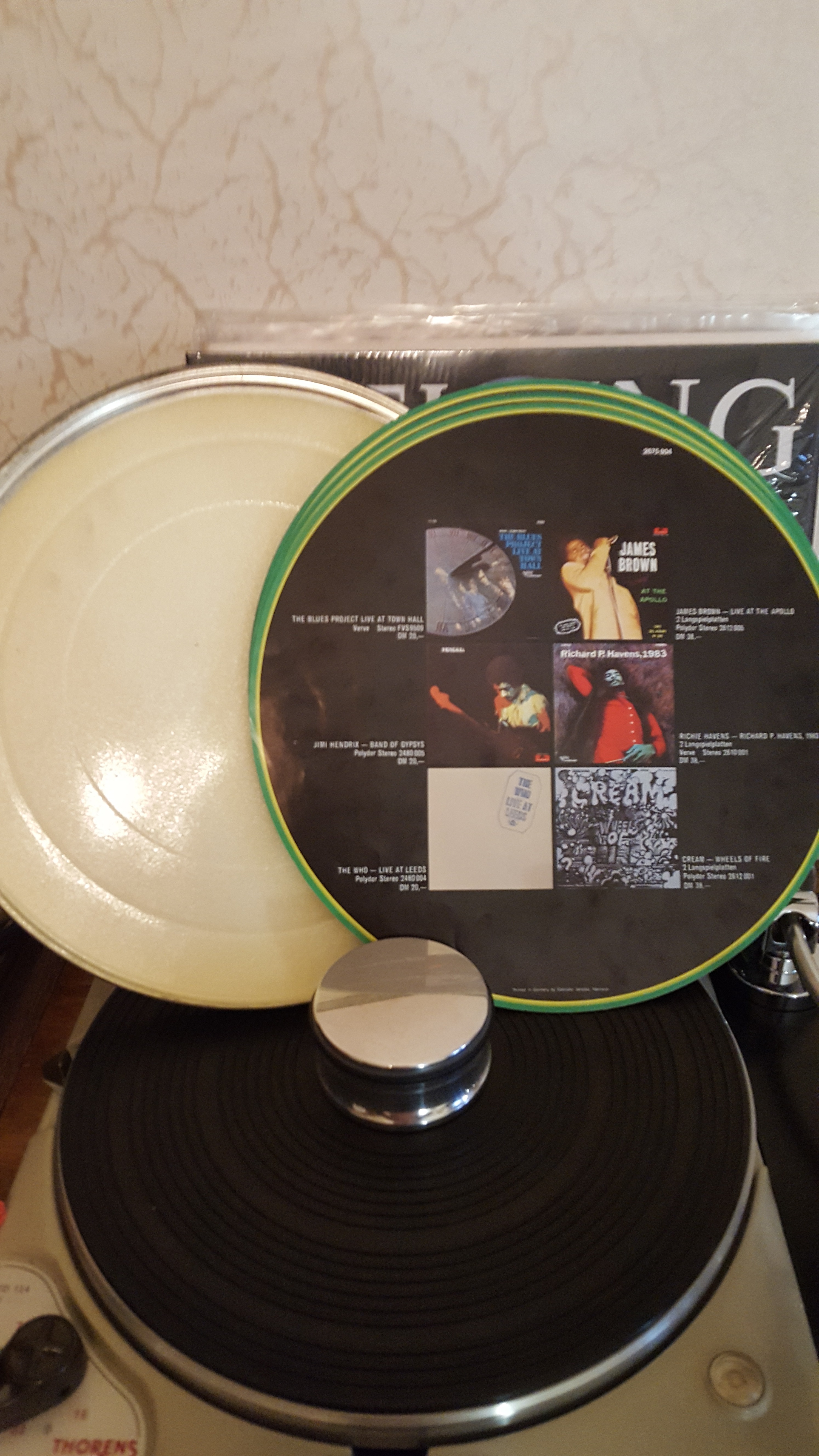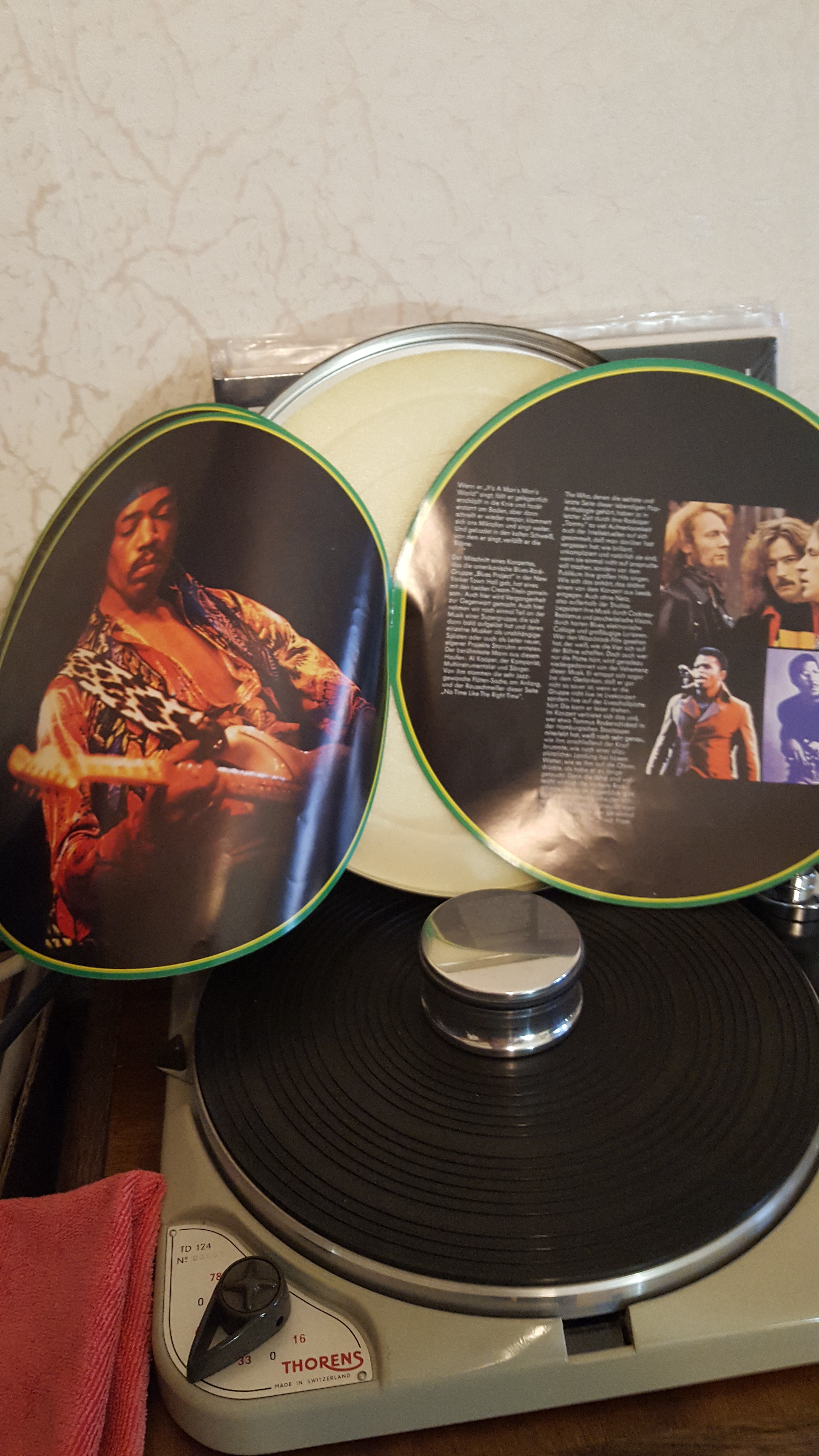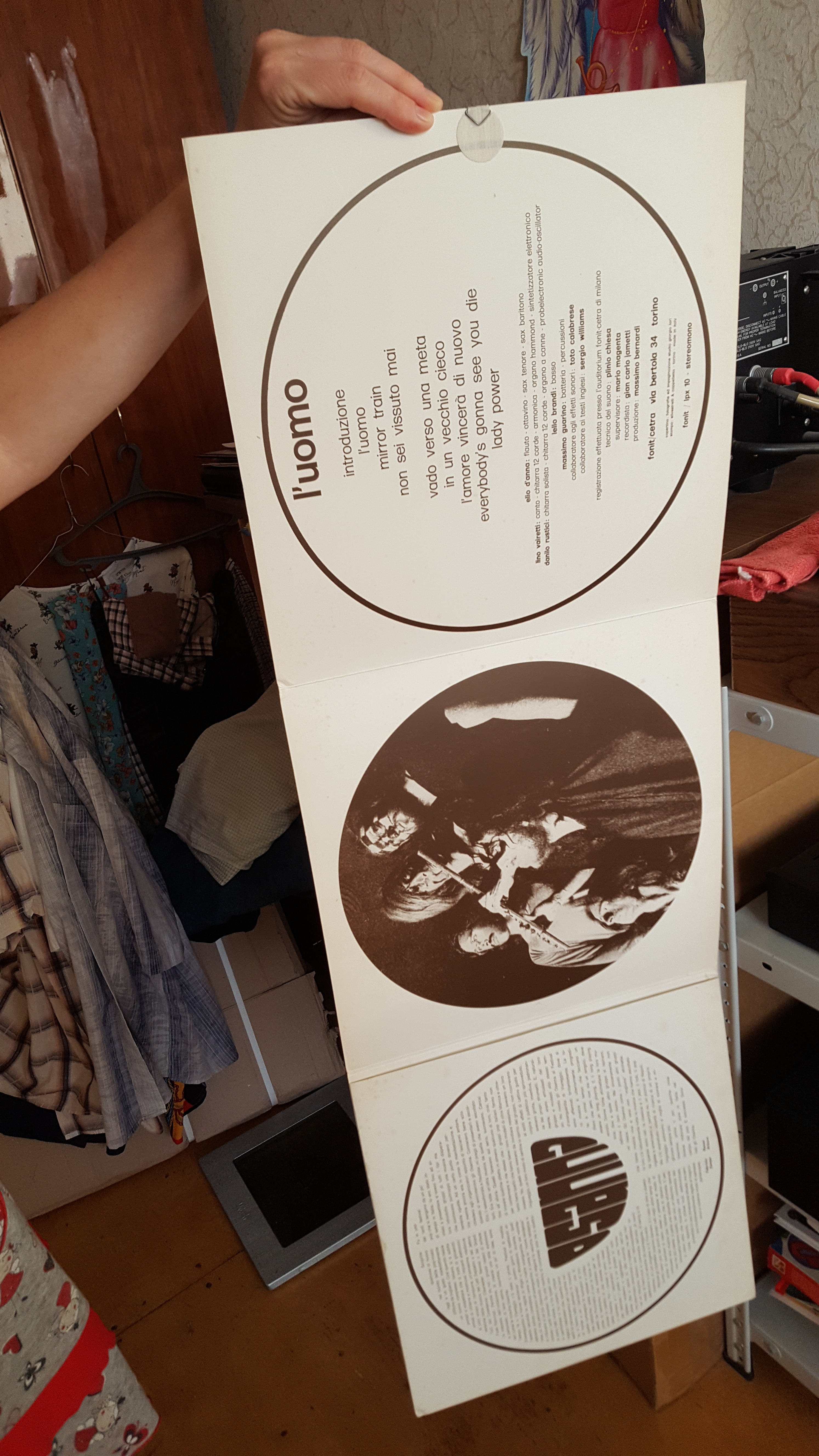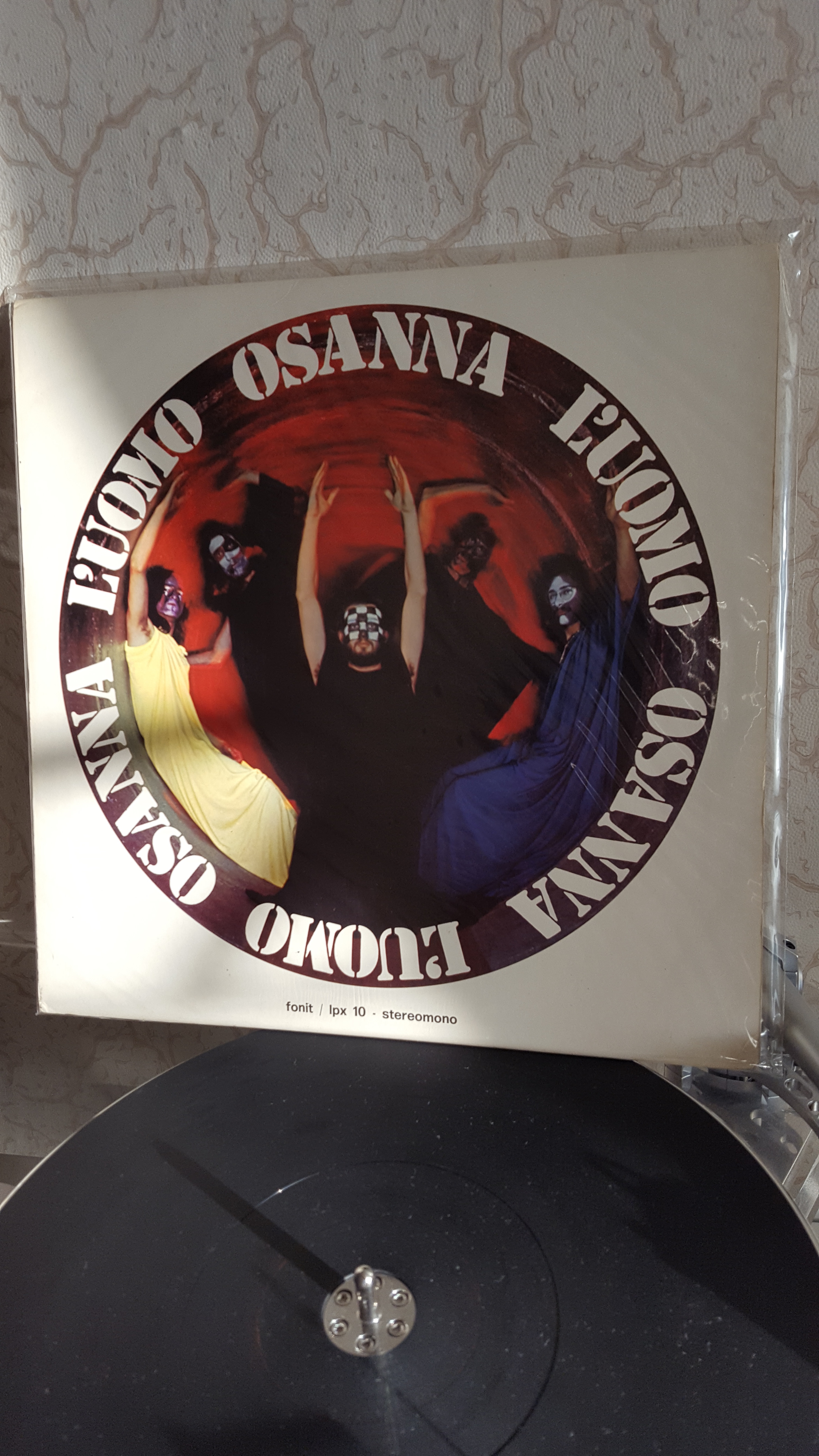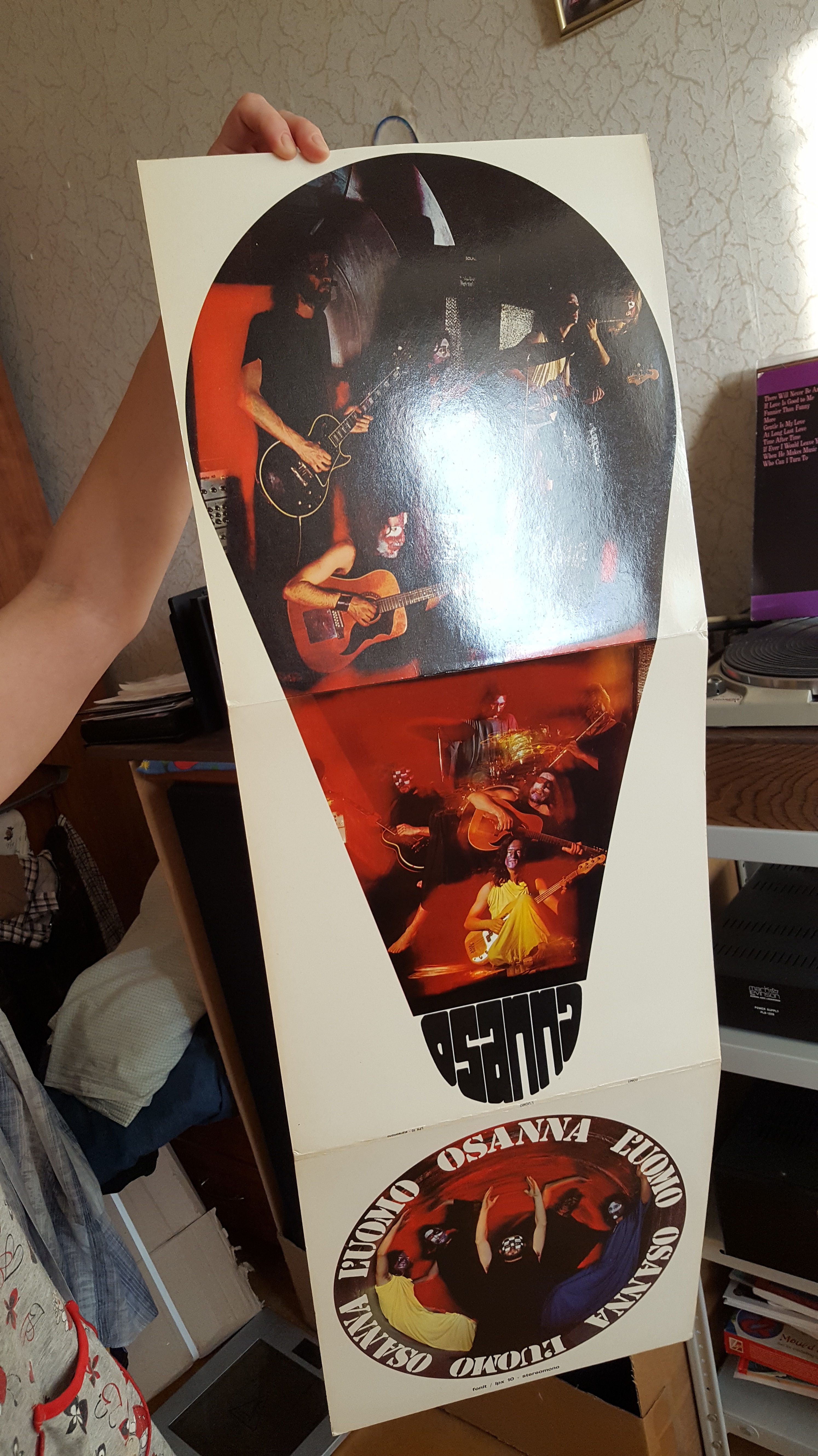 ....OSANNA...первый альбом,очень хорош,...раскладывается в три раза и с крючком(скобочкой) металлической ,что бы вешать на стенку(на итало проге,...есть еще описание пластмассового крючка,...типо позднее издание...)...все это хрень полная...