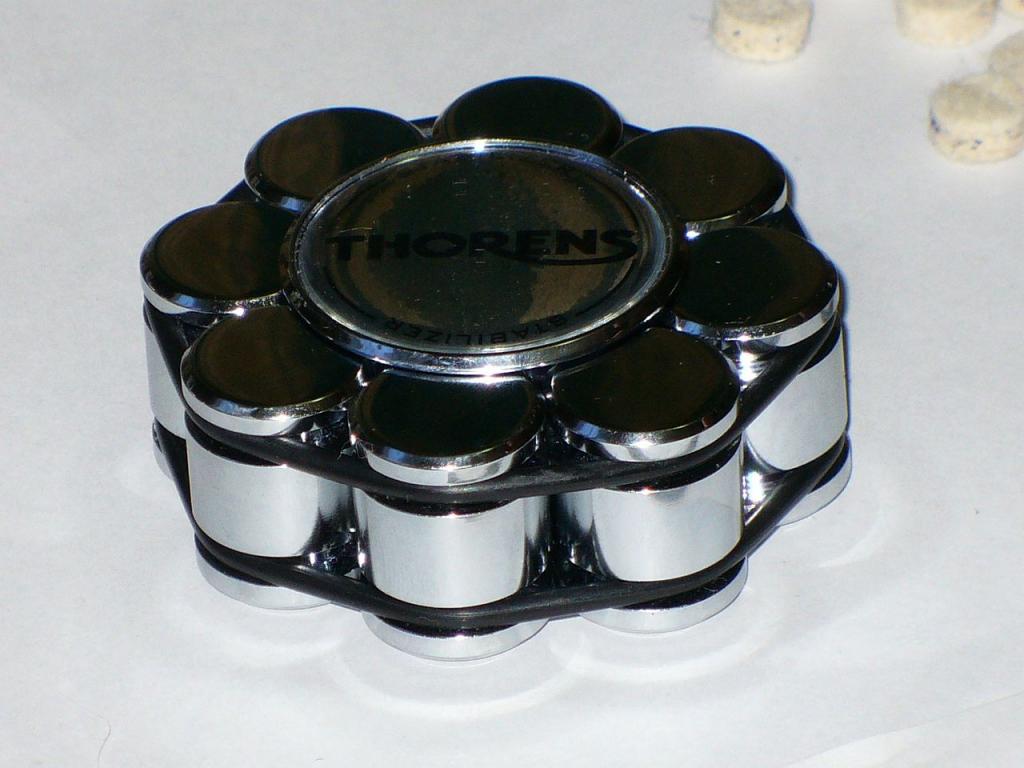 Я применял утяжелители именно с этой целью ( были раньше кривые пластинки ). Пробовал как то раньше и цанговый прижим - но не понравился( как то коряво было сделано - при зажиме царапал металлической втулкой шпиндель диска) .Сейчас не пользуюсь прижимами - может и зря