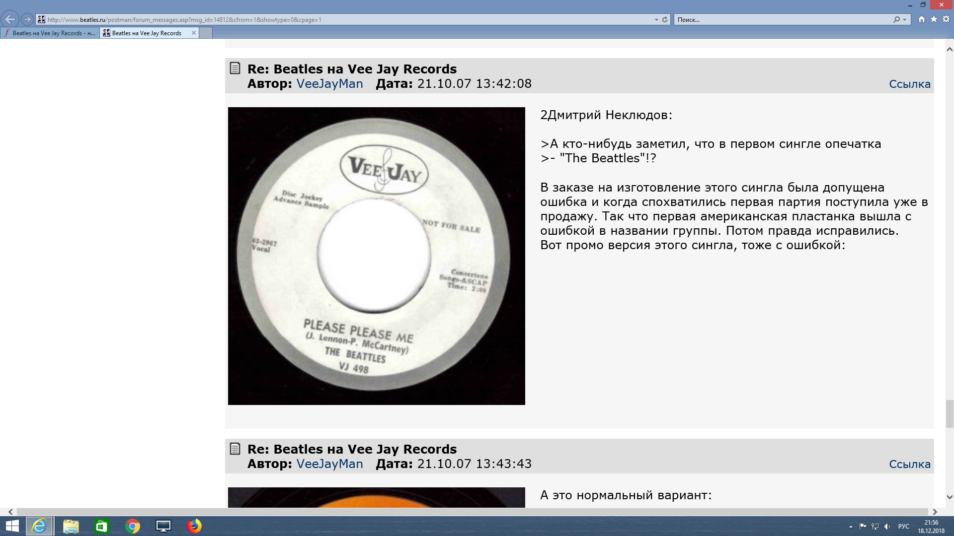 Universal Recording Corporation, Чикаго. Основные типы EMI были отправлены в Universal Recording Corporation для мастеринга, процесс, который включает в себя нарезку лаковых дисков. Инженер звукозаписи, который вырезал лаковую руку, запечатлел свои инициалы «RA» в области следов дисков вместе с мастер-номером каждой песни. Впоследствии, другое отличие, появляющееся в областях следа другого варианта, состоит в том, что инициалы «URJ» появляются вместо «RA». По-видимому, эти диски были освоены человеком, чьи инициалы «URJ». Его выгравированные вручную инициалы можно найти в отрывках многих синглов Vee-Jay, выпущенных в 1964 году.