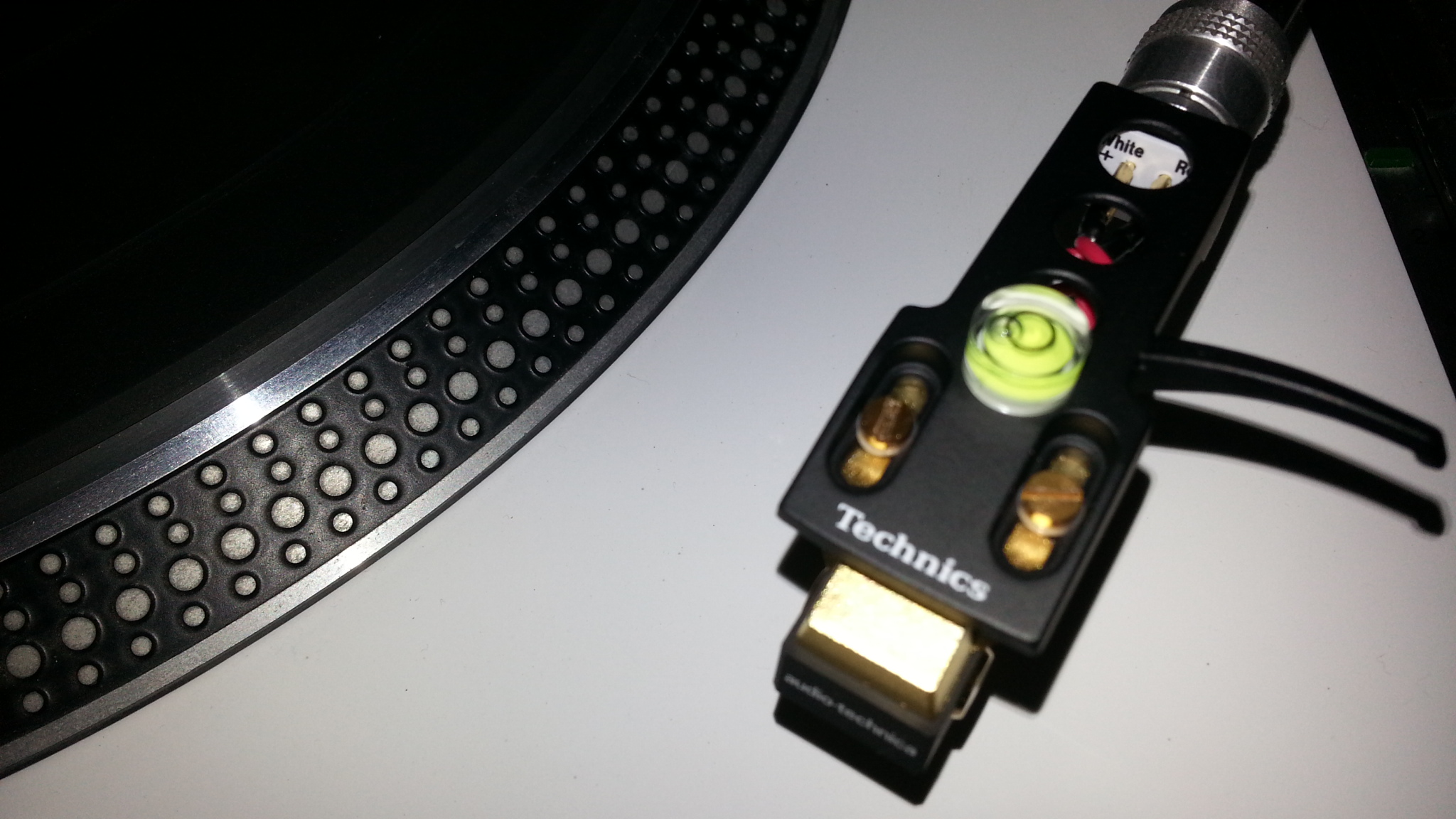На тонарме Техникса,возле шелла,есть ДВА маленьких винтика для регклировки азимута.Для этого у меня есть еще мааааленький круглый Ортофоновский уровень,который я ставлю на шелл для проверки азимута.