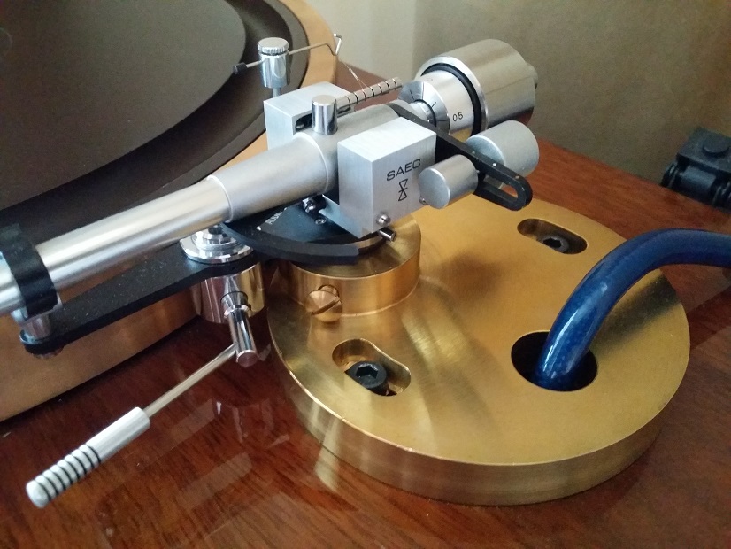 Здесь же стакан не нужен. "Нога" тонарма фиксируется латунным винтом. Кстати, при использовании японской базы получить желаемое установочное расстояние 221 мм не удается. Получается чуть больше.