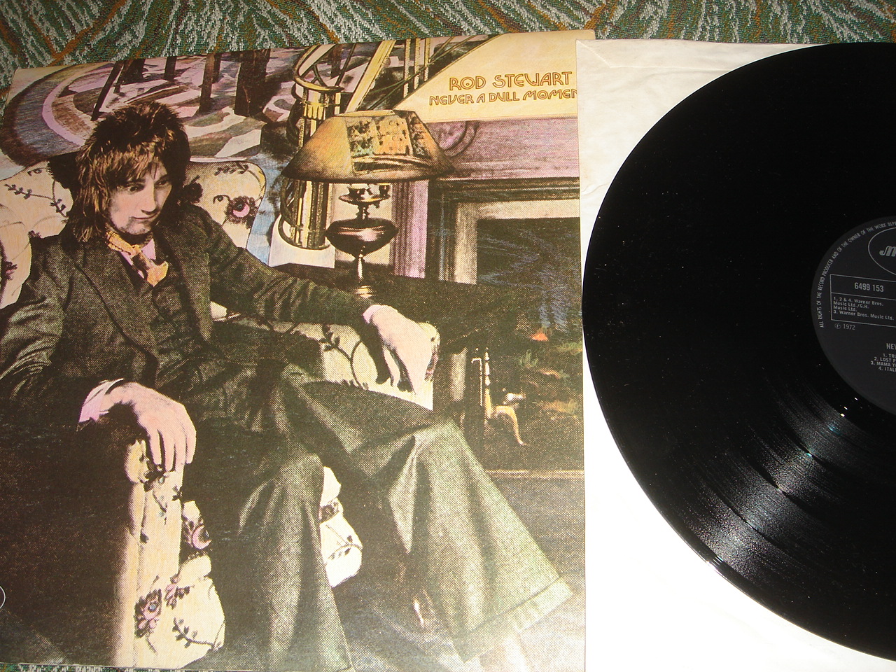Чудной конверт к Рода Стюарта, раскрывается, гетефолд, а пластинка вставляется с торца, причём с тыла, где обычно номер и название албума