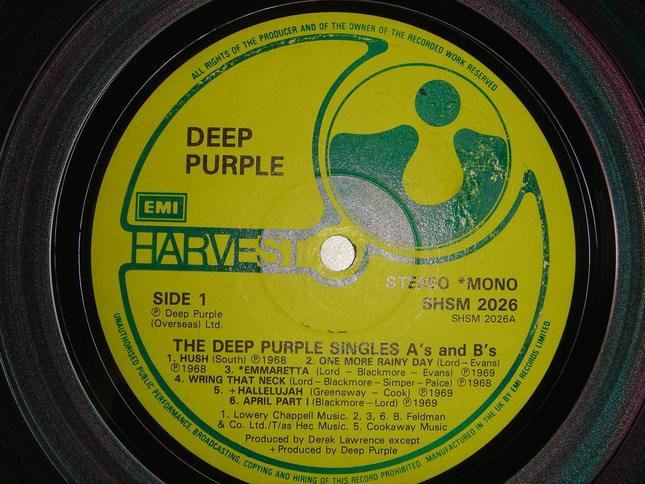 По-моему гораздо проще: Для Parlophone, Columbia, Harvest (все лейблы - подразделения EMI) 1965-1973 - надпись по кругу лейбла начинается с The Gramophone Company LTD 1973-1980 - EMI Records LTD С 1980 - All Rights Reserved На "Харвесте" боксовый значёк EMI появился в 1971 году. На Parlophone и Columbia второй EMI в рамке появился примерно в конце 1970го - начале 1971го.