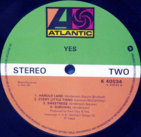 Yes "Yes" Atlantic GBR 1973 Re. Кто знает. В каком году помимо 1971 года переиздавался это альбом в Англии, шоб на я блоке логотип Warner был?