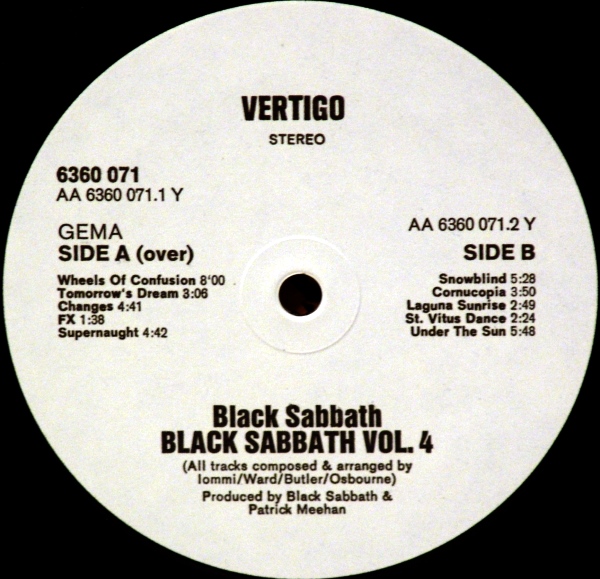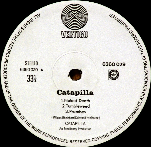 Гусеница не голландец. Вона Сингапурская. Почти все сингапурское сверло печаталось с голландских матриц. Но у моей гусеницы на сгоне стоит цифра 320. На моих немецких сверлах стоит тоже 320 (полный номер Catapila - 10 АА6360029 1Y 320. Как видно стиль напсания номера матрицы-стемпера полностью немецкий). А вот на моем первом саббате из Сингапура матрица имеет голландскую нумерацию - АА 847 903 1Y1 ℗ 1970 670. Матрица гусеницы или немчура, или гебрюки. А может для Голландии винил лепили в германии. А саббат - немецкое тестовое сверло. Вот интересная инфа: "SINGAPORE/MALAISYA/HONG KONG Singapore, Maleisya and Hong Kong shared one Phonogram pressing plant in the late seventies (and early eighties) and issued some albums on Vertigo swirl. It is not possible to discern between these three countries, except when a tiny golden sticker ''Made in Hong Kong'' is present. The swirl label survived much longer in this area than in almost any country. We therefore sometimes do find a swirl release that seems unlikely due to its late date, but nevertheless exits. It goes without saying, that the rarity scale is not as reliable as with more solidly documented countries. It seems extremely likely, that there are many more swirl albums from this area to be found. We have, more or less, two different periods with swirl releases from Singapore. The first falls into the well-known releases that were licensed from Britain. Three examples can be viewed below. There is no indication towards the country of origin, but Singapore inhabitants affirm that these are releases from their country. Later SMH albums are recognized as such by the note on the cover (see scan), which is in one way or other featured on every album we have seen bar one. The labels have the old Dutch copyright control logo(!) and also most matrix numbers are Dutch (see The Netherlands page). The typography of the labels is quite different to that country, though. We have found only one single from these locations." Взято отсюда