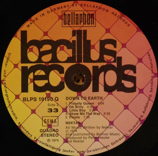 Nektar "Down To Earth" Bacillus Germany 1974 PP Quadro