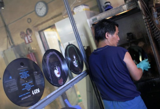 винил в какашках и каких то разводах.