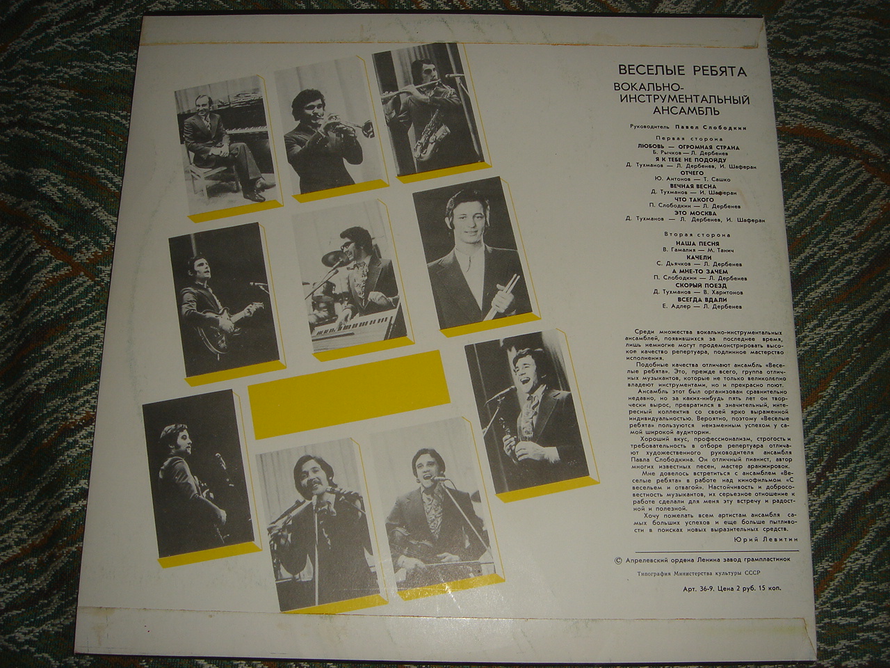 Олег Иванов пишет: Конечно речь идет об А. Лермане. Это вещь известная. Из вики , если вкратце .-С марта по сентябрь 1975 года Лерман ненадолго вернулся в ансамбль «Весёлые ребята», в котором выступал вместе с Аллой Пугачёвой. Последние три месяца жизни в СССР он выступал сольно, в последний раз выйдя на эстраду в декабре 1975 год, в концерте в МАрхИ, в котором также участвовала «Машина времени». Его имя было убрано с вышедшего после его отъезда диска Давида Тухманова «По волне моей памяти», где Лерман пел песню «Сердце, моё сердце», и с альбома «Весёлых ребят», а в титрах фильма «Отважный Ширак», песню в котором он исполнял, он фигурирует как Александр Сафиулин[ |
