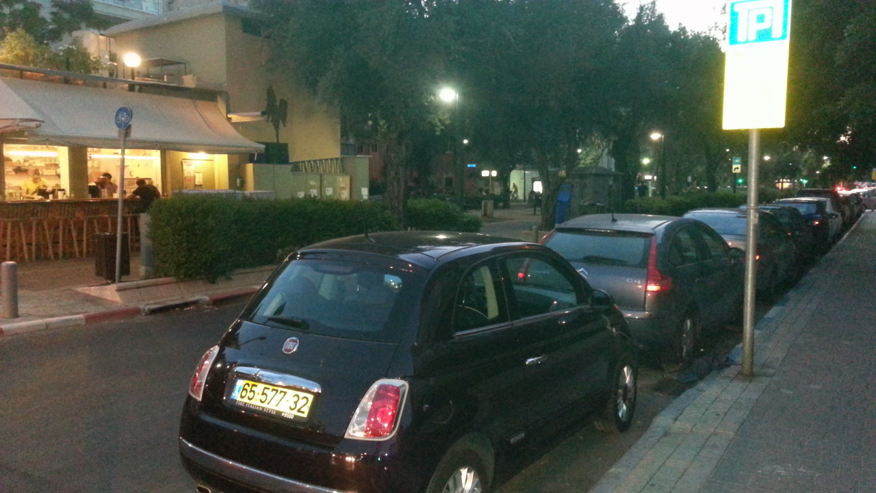 Черная итальянка. Купили для моей подруги. А это парковка по тель-авивски. Кто-то мне вчера сказал "как вы там живете,один песок...". Это не совсем так. Песок в пустыне на Юге,в городах асфальт.