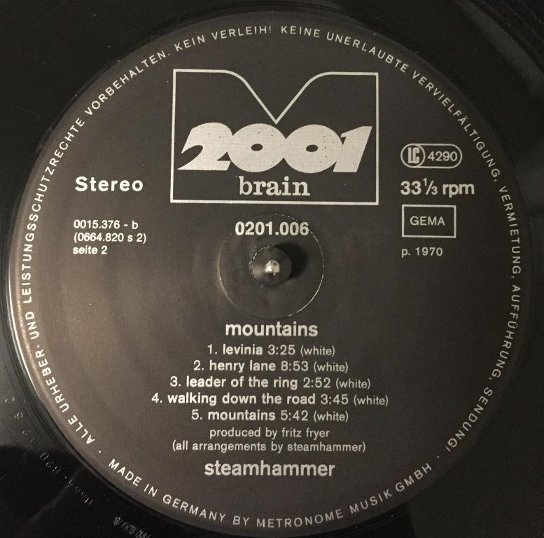 Твой красный 74, мой чёрный 78. Metronome 2001 Profil: Budget label of Metronome for reissues and compilations, issued in cooperation with Zweitausendeins and hence the name. The label was active from 1973 to 1977. Releases are usually distinguished by the red M 2001 logo (although not always). Release History: 1970 Mountains Pink Elephant PE 855.001-H 1970 Mountains Metronome MLP 15 376 1970 Mountains Fontana 6459 302 1970 Mountains B&C CAS 1024 1974 Mountains 2001 Brain 201.006 1978 Mountains 2001 Brain 0201.006 Больше информации не нашёл