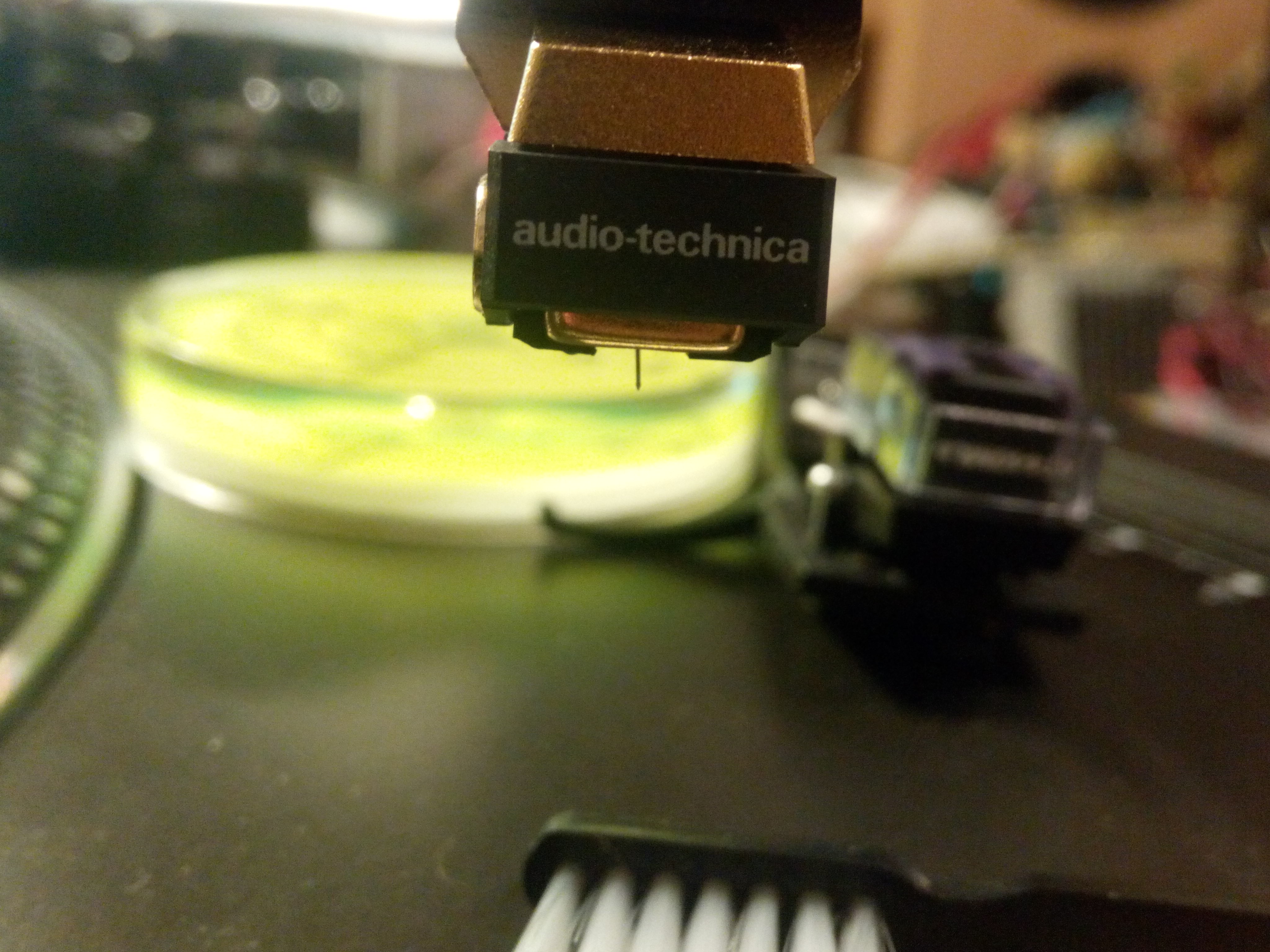 Прошу помощи и совета в настройке, может я чего забыл или не знаю, прошу смело указывать на недочёты. В общем новая AT150MLX оставляет след на пластинках, особенно это заметно на новых дисках, при определённом угле осмотра трек меняет цвет с тёмного на светлый, этого с 440-ой не было. И появляется мелкая пыль, её мало но в общем я думаю это игла сдирает. Начал я свою виниловую жизнь основательно год назад. Прикупил вертак Technics SL1210Mk2. Сначала оснастил AT440mlb с новой вставкой. С ней всё отлично. Затем прикупил AT150MLX на ебэе. И началось... Рано радовался, настроил так же как и 440-ю, по уровням, по транспортиру, по зеркалу, по шаблону и даже смотрел нелинейные искажения по тестовой пластине. Прижим выставил 1.25гр, менял от 0,75 до 1,75гр, всё равно явный след на пластинке. Помню когда настраивал и крутил в хедшеле 440-ую голову, как только криво она у меня не стояла, никакого следа от неё нет, только лишь искажения менялись от 0,1% до 1.3% примерно. Но тестдиск старый, уже поношеный, там искажуха тоже прёт с него местами. Для 150-й выставил угол VTA сначала по лимбу у основания тонарма, получается 0,3 т.к. высота головки 17,3мм, а в нулевом положении лимб это для высоты головки 17мм(если я не ошибаюсь). Затем прикинул по уровням на хедшеле и на столе, оказалось что игла завалена назад, поднял тонарм до риски 2,2 точно по уровню на хедшеле. Ничего не поменялось, видимый след остаётся после прохода. В хедшеле голова стоит от разъёма до кончика иглы ровно 52мм. Курс иглы строго параллельно хедшела(как по паспорту техникса). И шаблон с транспортиром это подтверждает. Перпендикуляр выставлен также по транспортиру и по уровню. Что может быть не так, чего я забыл сделать??? Не дурак ведь, с высшим техническим образованием. Может быть кто поможет советом, или может куда в другую ветку обратиться. ![]() |