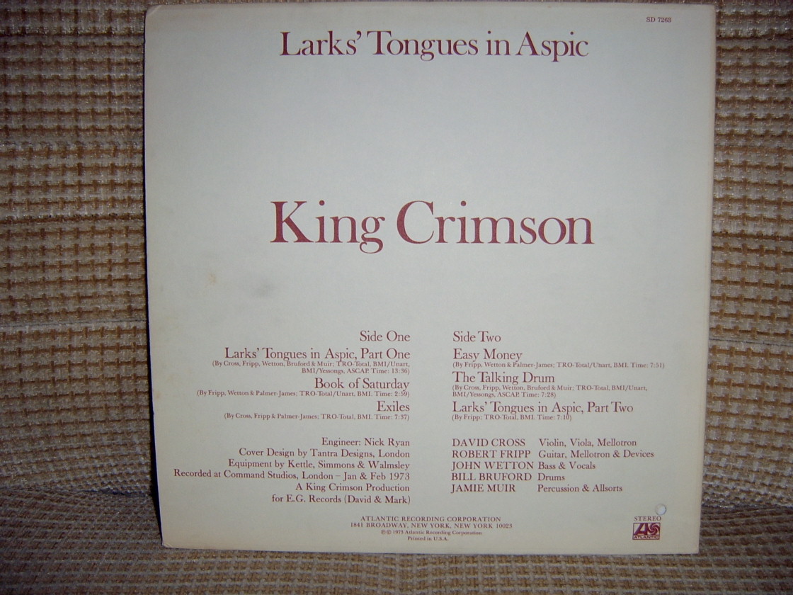 | *** Деточкин пишет: King Crimson, Larks' Tonques in Aspic, Atlantic rec, 1973. |