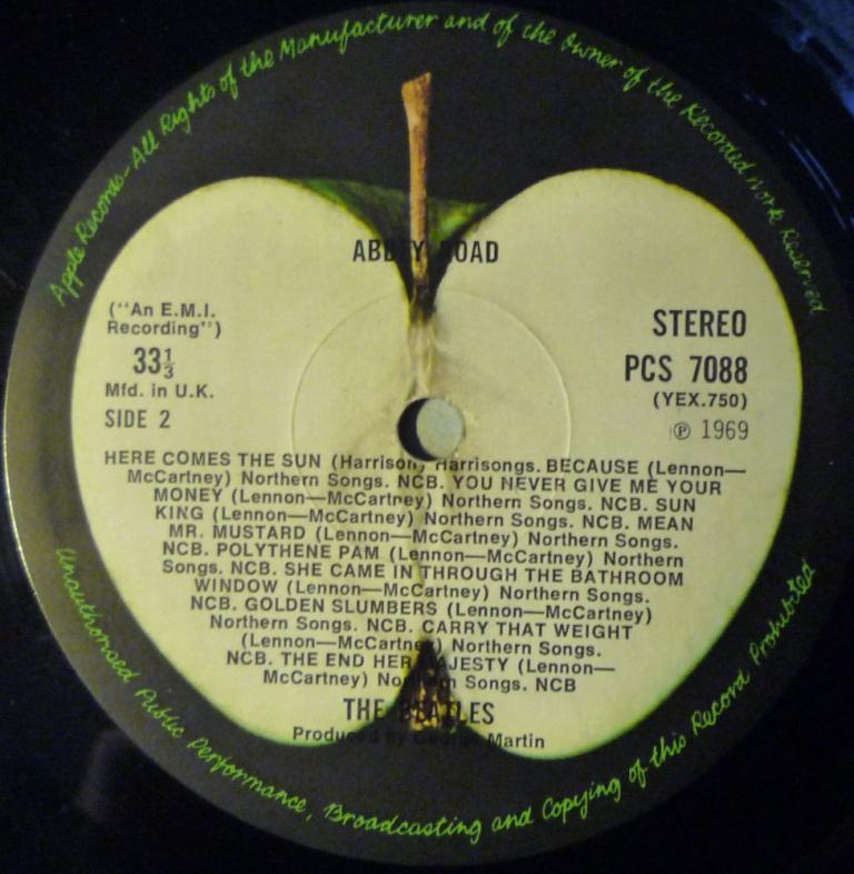 Тезка, я этот альбом купил в обложке со сдвинутым яблоком за $130, но конечно из-за конверта, ибо состояние этого диска было не слишком хорошим - я его даже и не слушал. А потом я купил у Дяди Сани девственно чистый перший пресс без Мэджести и таким образом обрел вожделенный набор, включая чорную икр... тьфу, вкладку. Еще позже я прикупил у Дяди Сани за 100 евро очередное "сдвинутое" издание, которое впоследствии отдал, со скрипом, за 200. Тогда, я только начинал свой виниловый ривайвл и поверил на слово продАвцу, что это именно второй пресс (A-2/B-1 dark) И еще на этом диске, в отличие от першего год издания более крупным шрифтом. Малахов рассказал, что разные заводы. Но то, что это один из ранних прессов - факт. И потом, Сережа, я не втюхал диск, а подарил! Почувствуй разницу. Хочешь, тебе что-нить подарю. ББ! Приезжай! А вот вам заодно и интрига - пусть консилиум расскажет, что за артефакт я отдал. Мобыть он лимон стоит...? Ась?