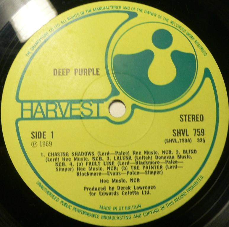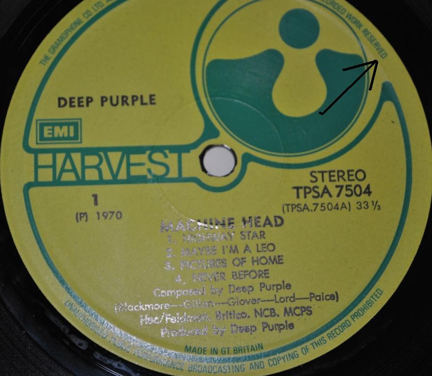 1. Отличается шрифтом. 2. Отпечатан на другом заводе - на матрице есть pressing ring, которого нет на нормальном Harvest. Посмотри хотя бы на свой лиловый с ЭМИ.
