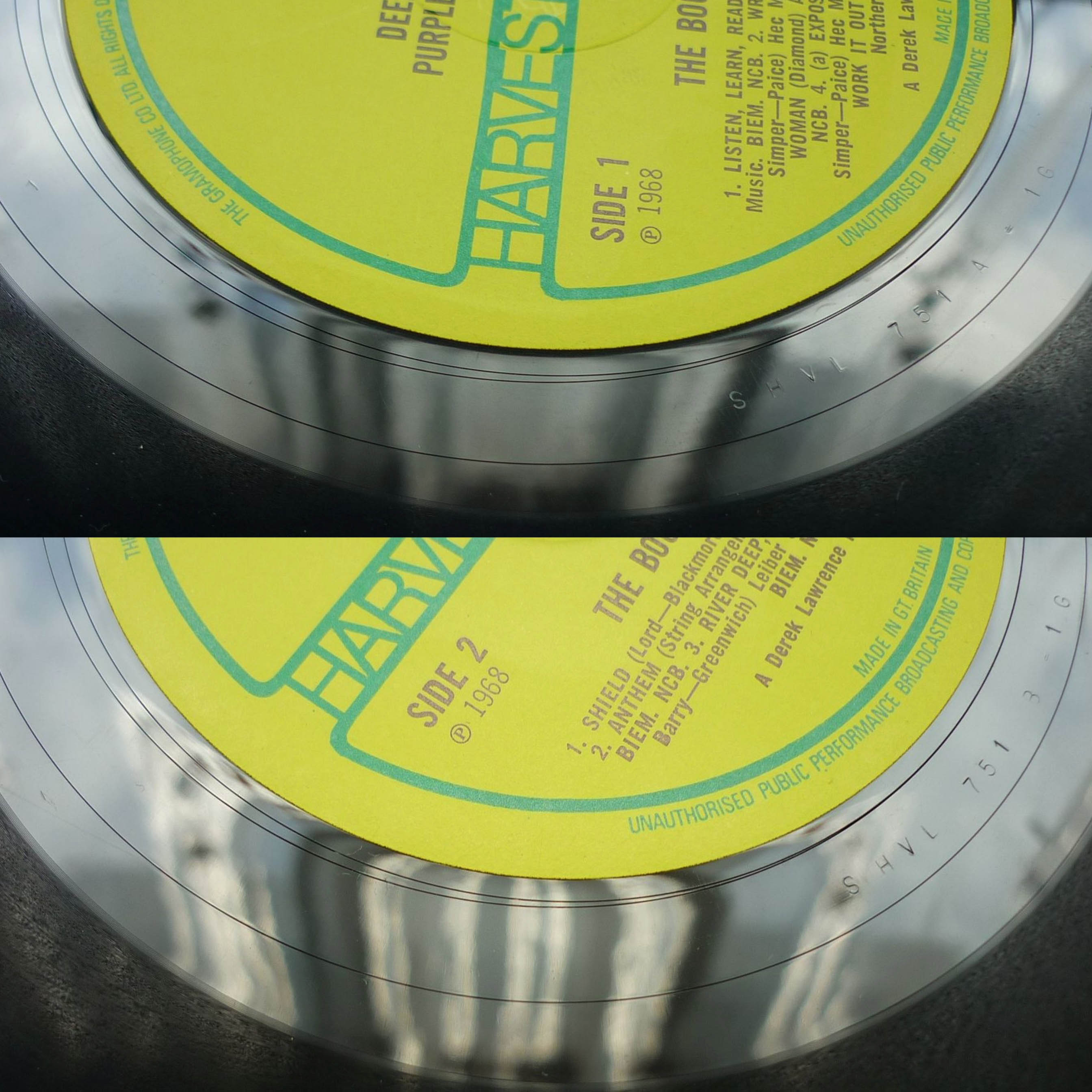Deep purple the book of taliesyn A-1G, B-1G без EMI, надпись DP в строчку. Не звучит. Американец первый вообще без низких! А вот у канадца все хорошо. Хотя в моей системе лучше и громче записан какой-то перешлепок, сделанный в ЕЕС. Кто-нибудь сравнивал первый пресс (не нашел нигде) ЮК и последующие перешлепки?
