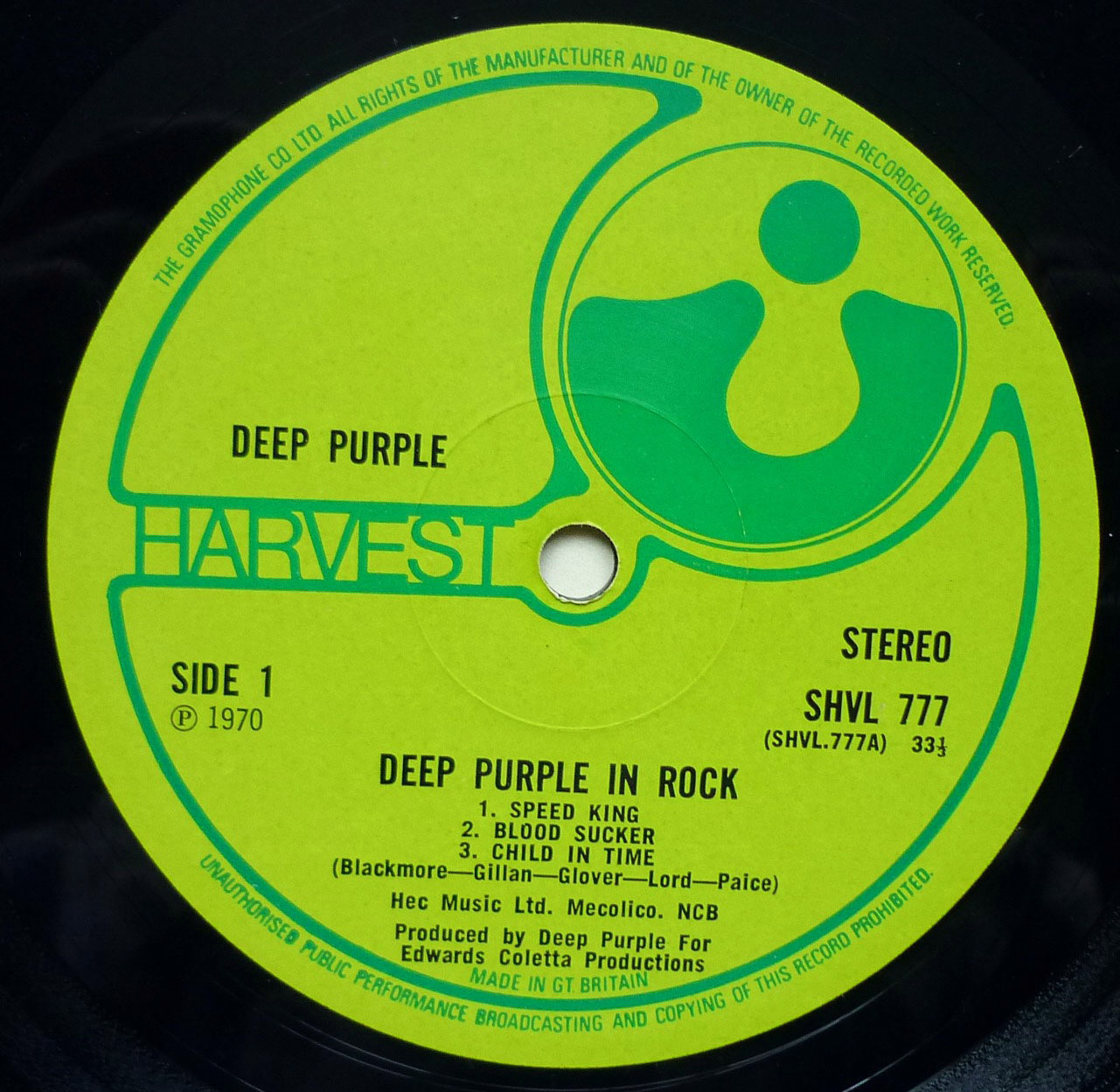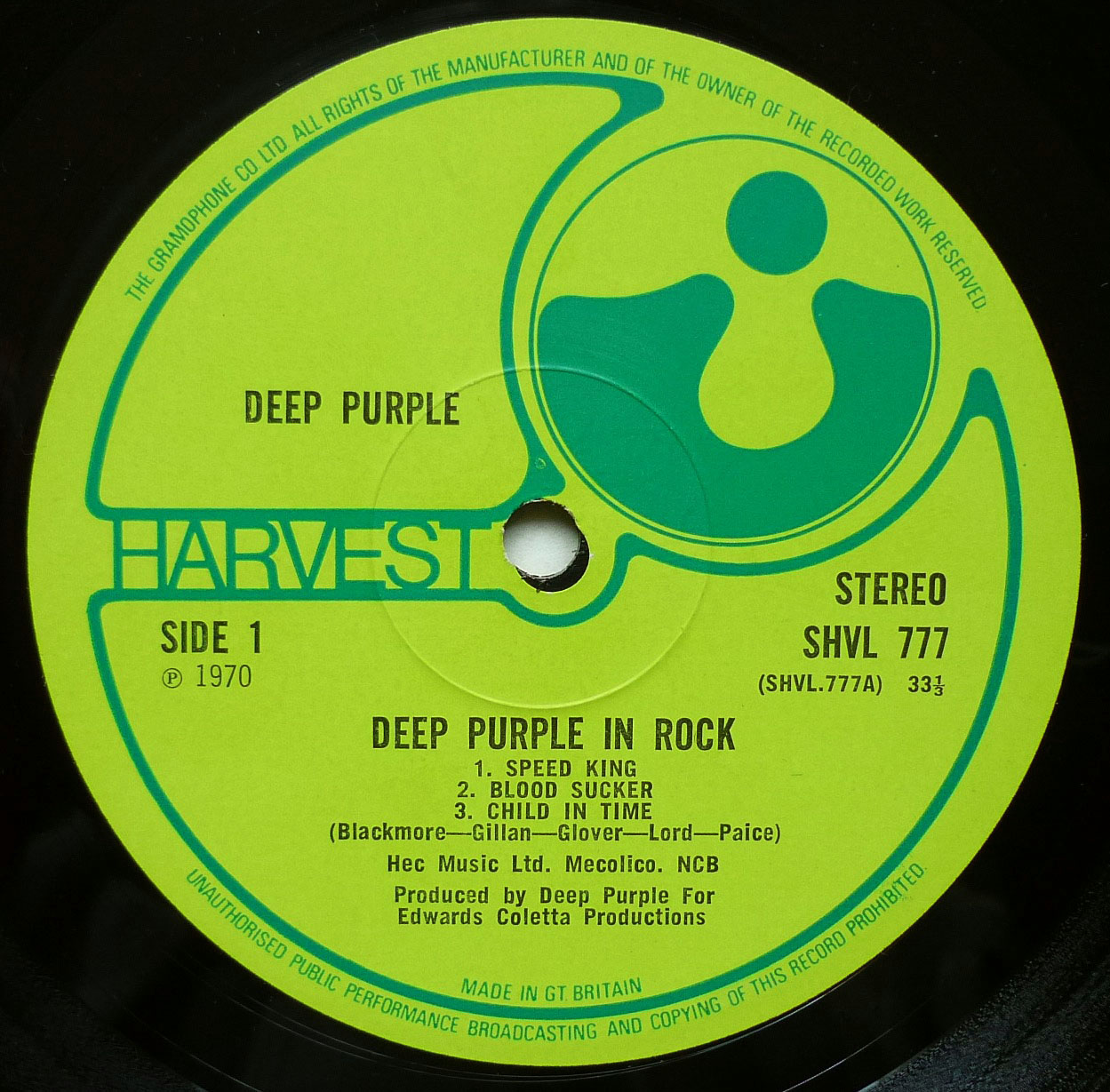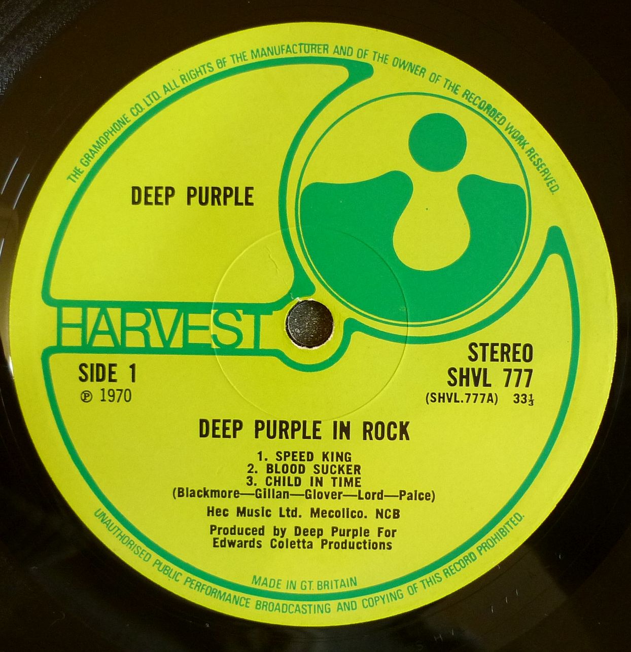 Матрицы A1/B1. KT (такс-код) Надписи Deep Purple, расположены на разных уровнях лейбла. |