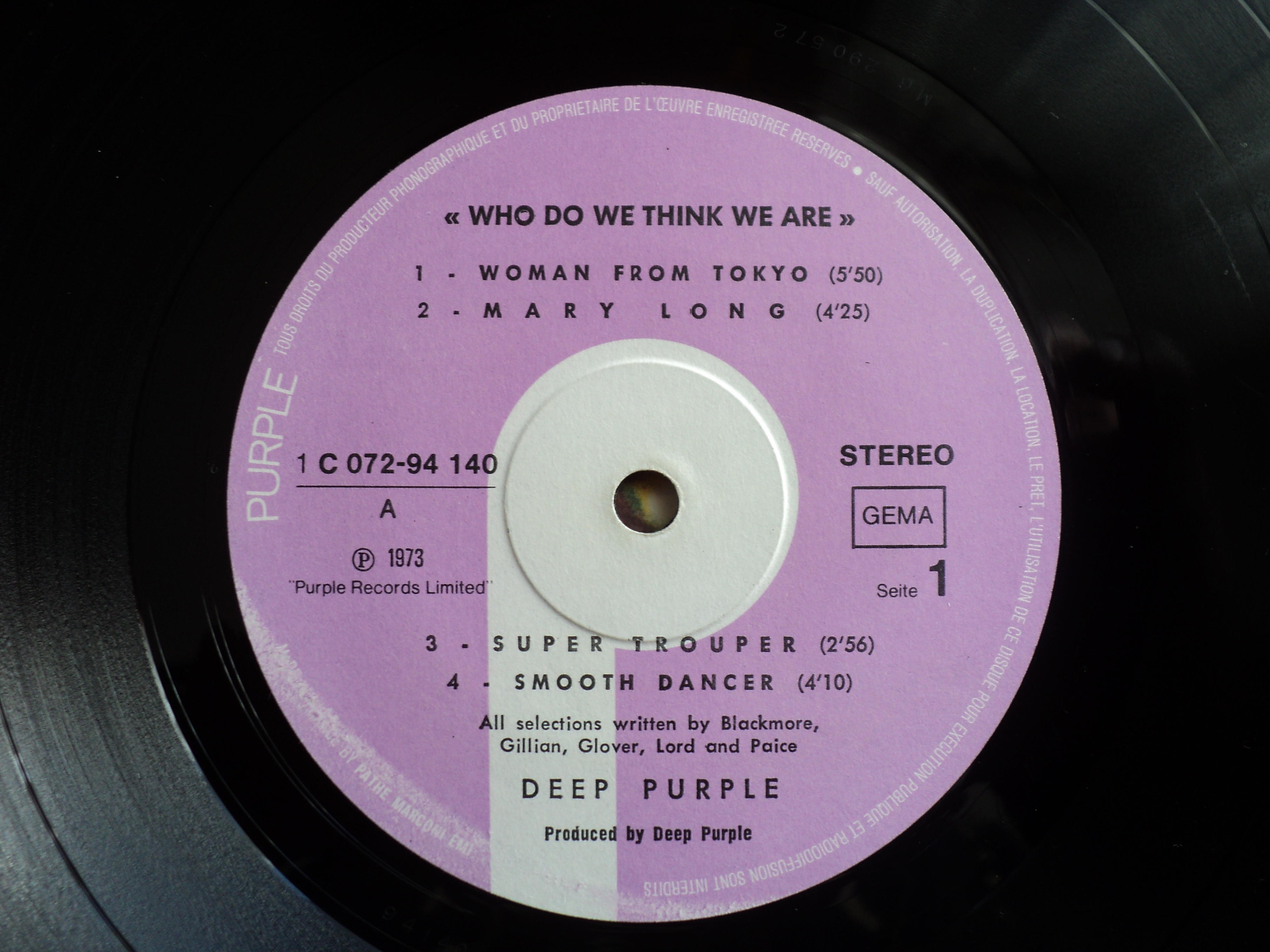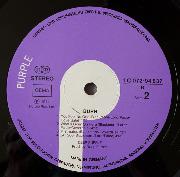First released in Germany, January 1974 on Purple Records 1C 062-94837. In UK February 1974 Purple Records TPS-3505 (0c062-94837), US February 1974 Warner Bros W-2766, Japan February 1974 Warner Bros P-8419W, Germany February 1974 Purple Records 1c244-94837 [1MC], France February 1974 Purple Records C066-94837, UK 1974 Purple Records TC-TPS-3505 (0c244-94837) [1MC], Italy 1974 Purple Records 3c064-94837 , ![]() Кстати, по французу с номером 072 это вообще может быть 4 издание от 81 года.