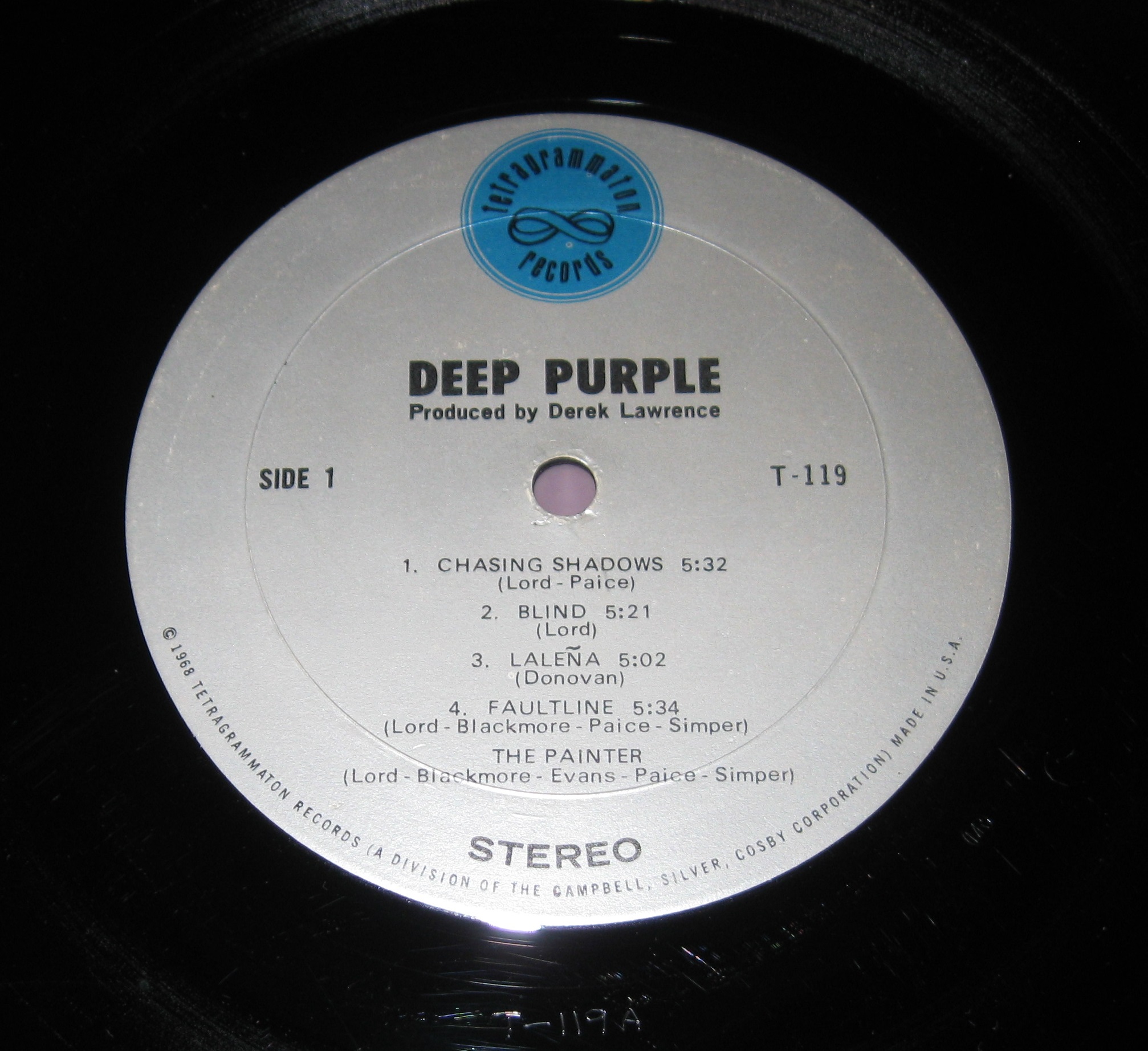 Для примера, ещё один "Тетраграмматон", выштамповка лейбла очень характерна для этого периода (1968-1969гг.), подделки появились гораздо позже и выштамповка лейбла там отличается.