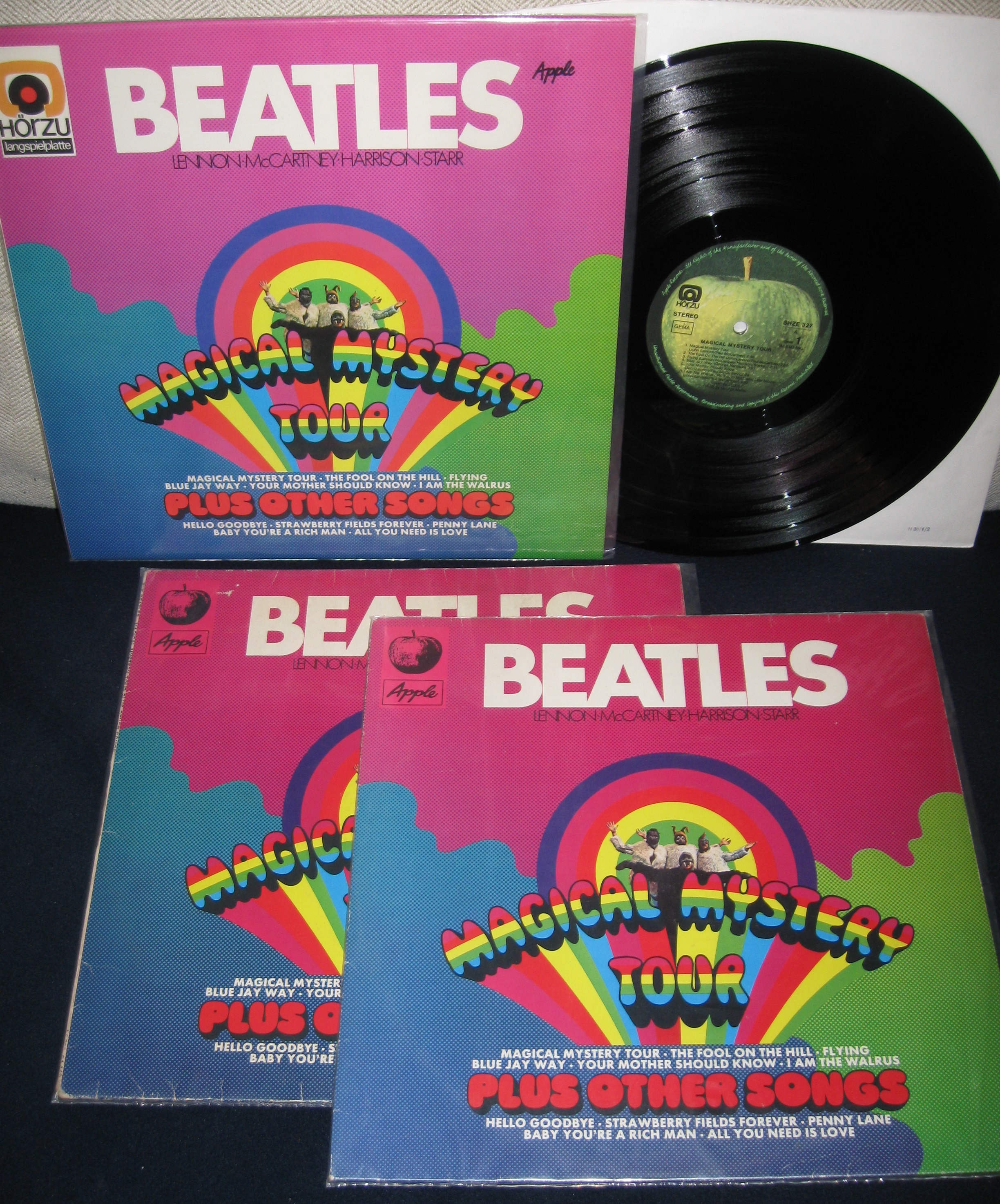 В 1976м англичане задумали выпустить данный альбом в таком же виде (до этого он выходил в англии только как двойной EP) и вместо того, чтобы воспользоваться мастер лентами из архива EMI они использовали копии американского мастера то есть копии копий (!). Но это ещё не всё Самым лучшим по звуку стерео изданием MMT считается немецкое, причём матрицы должны быть SHZE 327 A-1/ SHZE 327 B-3 (второе издание 73го и последующие вплоть до 80хх) здесь были использованы первые копии оригинальных английских плёнок все в стерео. На первом немецком издании 1971го (A-1/B-1) для второй стороны использовали копии американского мастера (с фэйк стерео) - его брать не стоит.