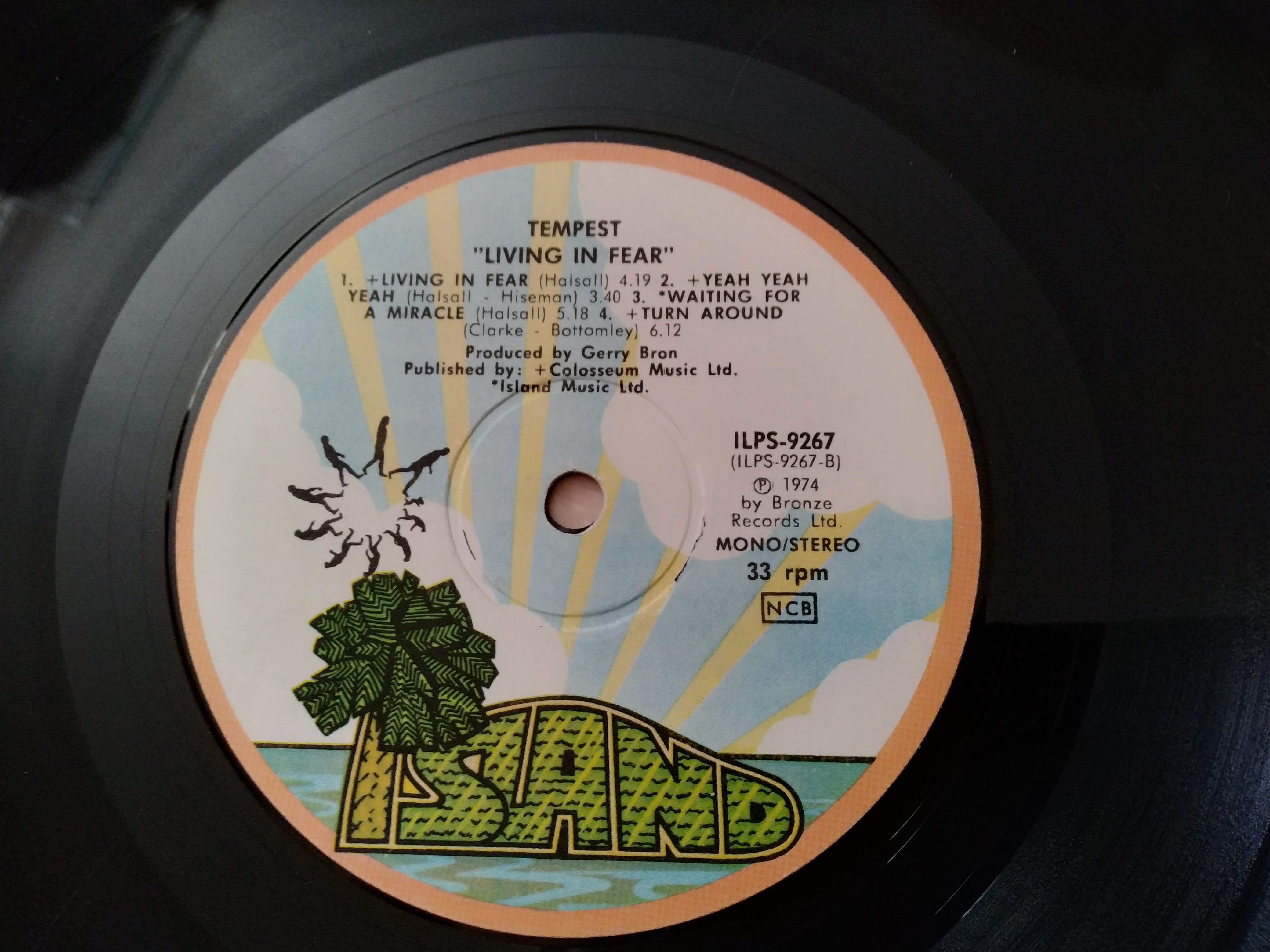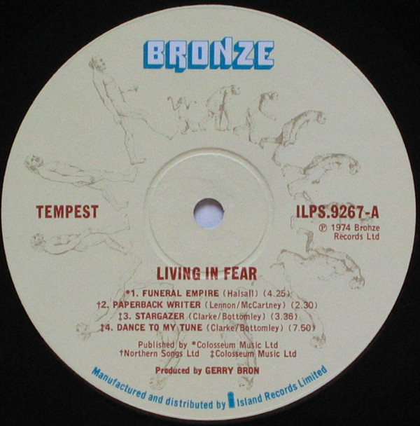 Notes Recorded October/November 1973 at Air Recording Studios, London. ℗ 1974 Bronze Records Ltd. Manufactured and distributed by Island Records. The original inner sleeve states "Living in Fear" in the front cover bow of the P of Tempest and displays the bandshot from the sleeve backside in the "mouth". Credits on inner sleeve. Barcode and Other Identifiers Matrix / Runout (A-side): ILPS 9267-A Lasse.B. Matrix / Runout (B-side): ILPS 9267-B JT Rights Society: NCB |