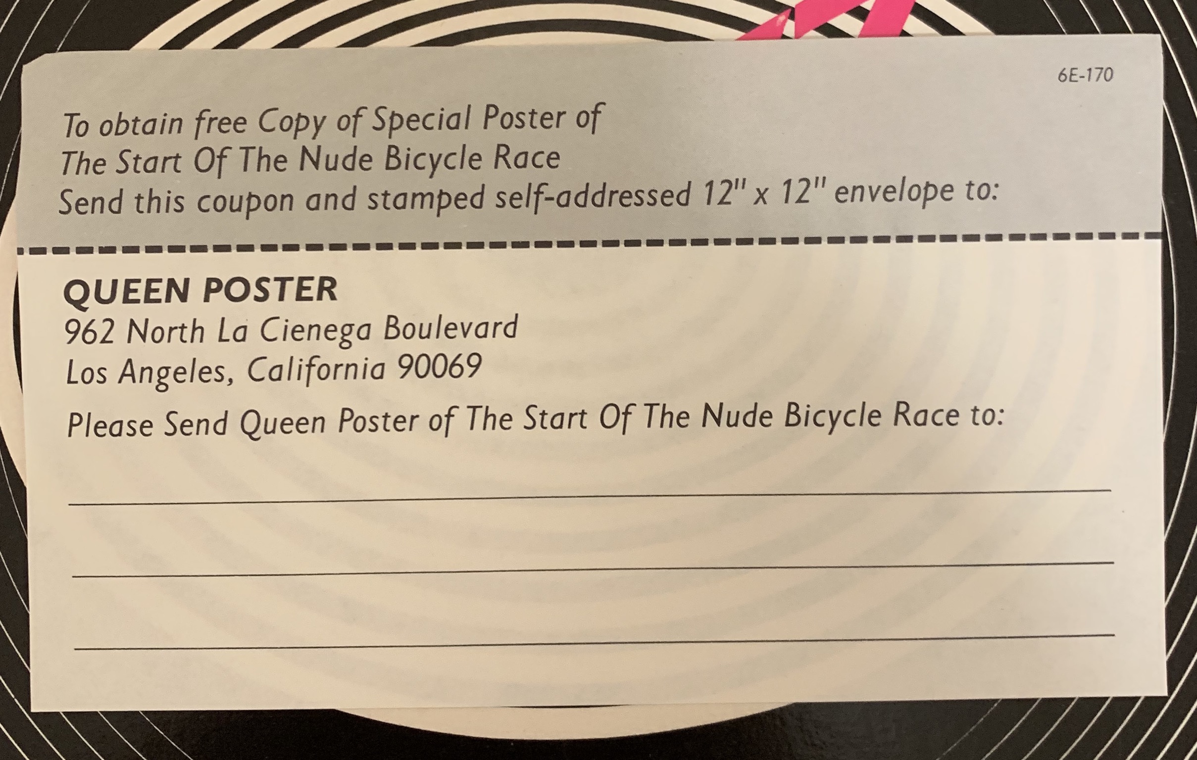 И всё-таки разобрался. В штатах и оригинал 6E-166 и переиздание 6E-170 выходили в двух вариантах. С постером и без. В вариант без постера, вкладывалась карточка для заказа