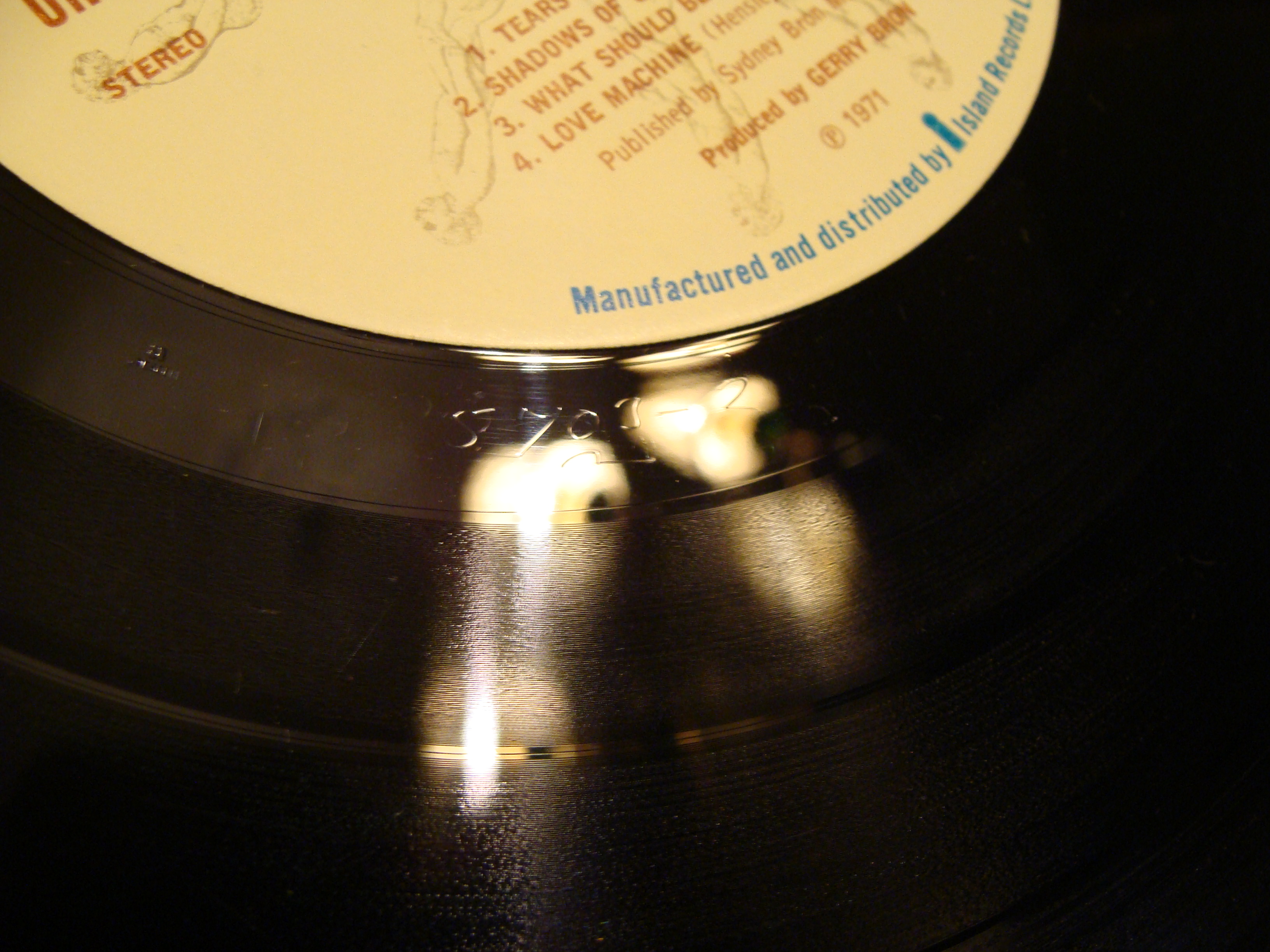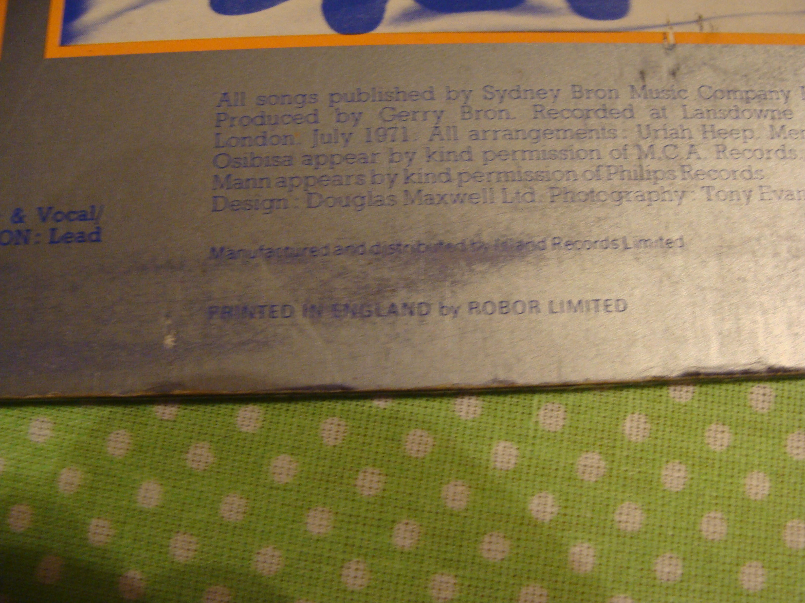 Ну если серьезно, хотя показали бы фото альбомов с заклейкой или ссылки дали. Мысль конечно какая то есть. Посмотрел свой канадский Джетро Талл - Акваланг, снизу типографским способом две замазки. Видимо печатали обложку или в США или с их клише. Поэтому замазали Made in USA и Warner Bros. |