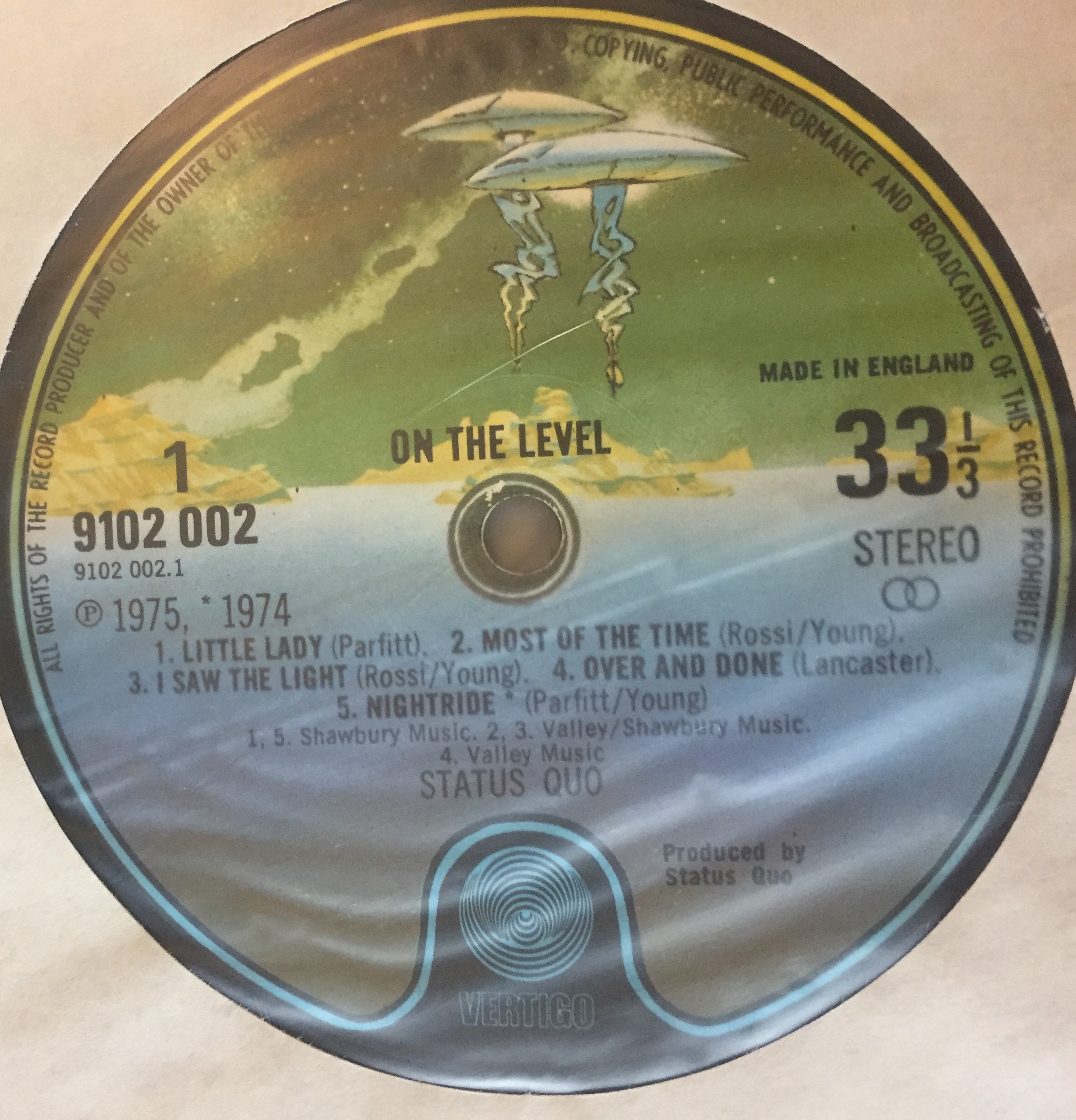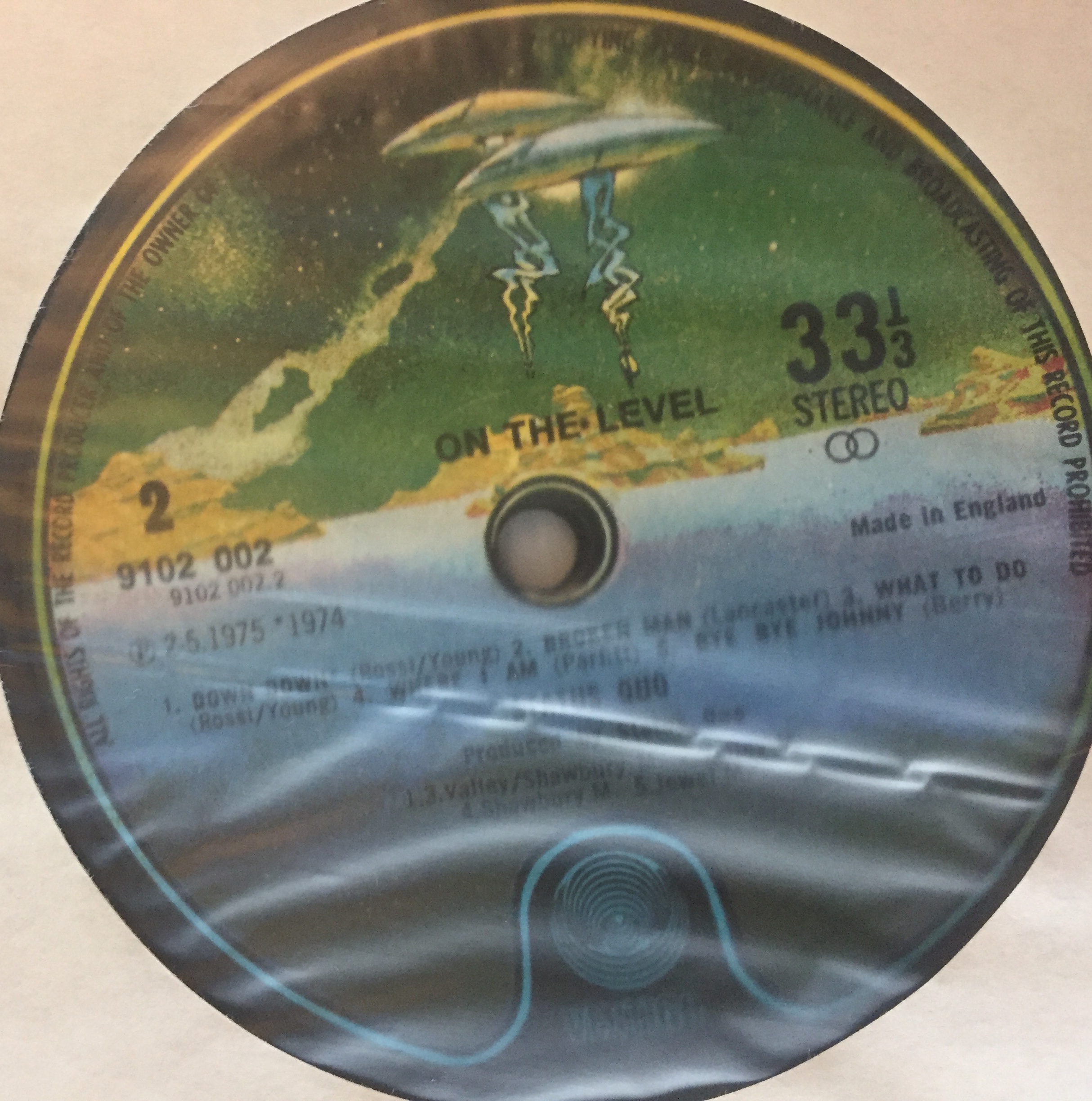 Первая сторона нормальная А вторая вот такая: Согласно книге Гришина, лэйбла с надписью Made in England под стерео символом и без надписи Phonogram Ltd не существует. Значит, использовали ранее отпечатанные лэйблы, в итоге получили брак и может даже нарвались на штраф - Фонограм то не указан. |