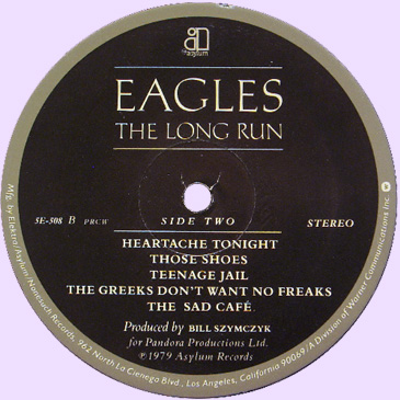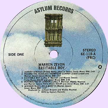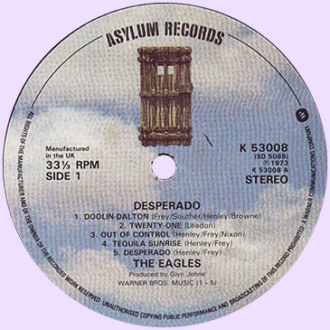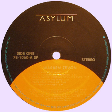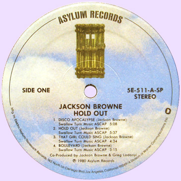 На яблоках Asylum чаще всего изображена дверь в небесах, так называемая door in the blue skies. Я встречал пластинки этого лейбла с буквой "a" на синем фоне. Есть промоушен копии, где дверь в небесах отпечатана в ч-б варианте. Увидел сегодня на ибее, черно-желтое яблоко (на черном фоне написано белым asylum). Это какой-то специальный тираж. И что было раньше, дверь в небе, буква "а" или черно-желтый фон?