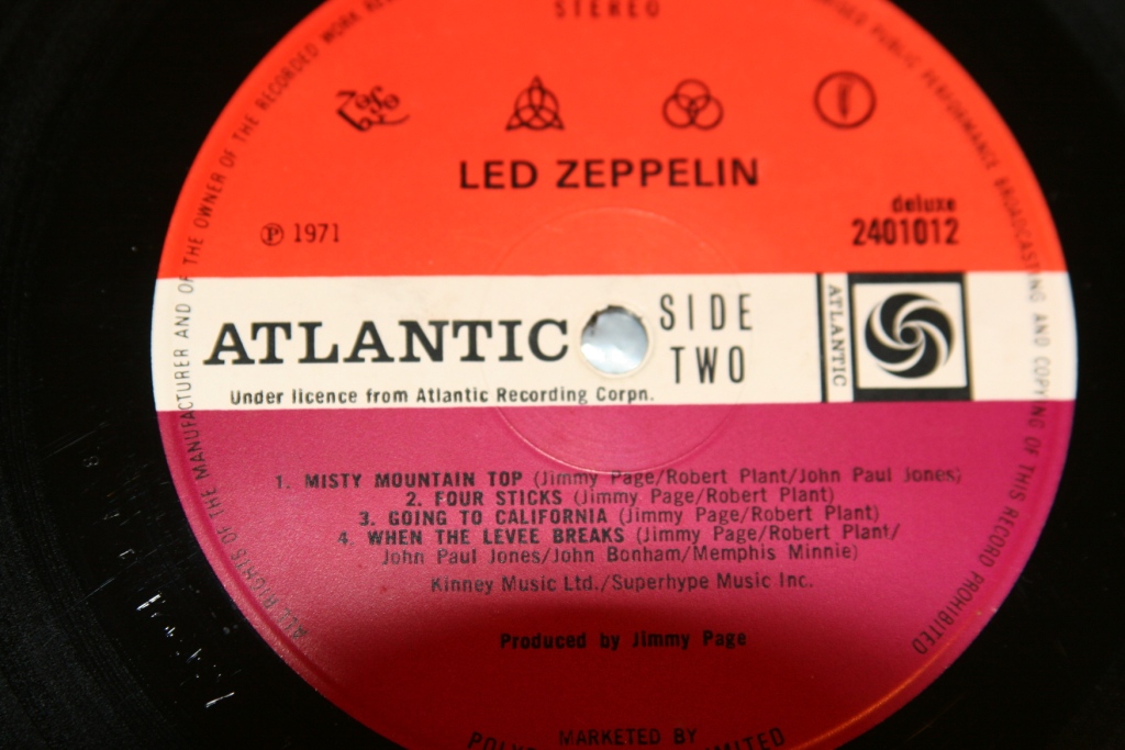Пришла тут пластиночка ЛЗ4, брал на замену получше качеством. Ради интереса сравнил две пластинки и увидел интересную вещь: первая песня всю жизнь называлась misty mountain HOP, а на той пластинке что у меня была уже, она написана так как я указал в теме. Я и внимания не обращал до этого. еще пятаки оказались со множеством различий, но это уже мелочи. Там где нормальное название, стоит значок уорнера, а там где написано ТОР, там где номера матриц, нацарапано PORKY. Что за прикол такой? Еще бумага во вкладке такая шершавая, типа под старинную и печать картинке похуже. Уорнеровский бумага гладкая и отпечатано все до мелчайших черточек.