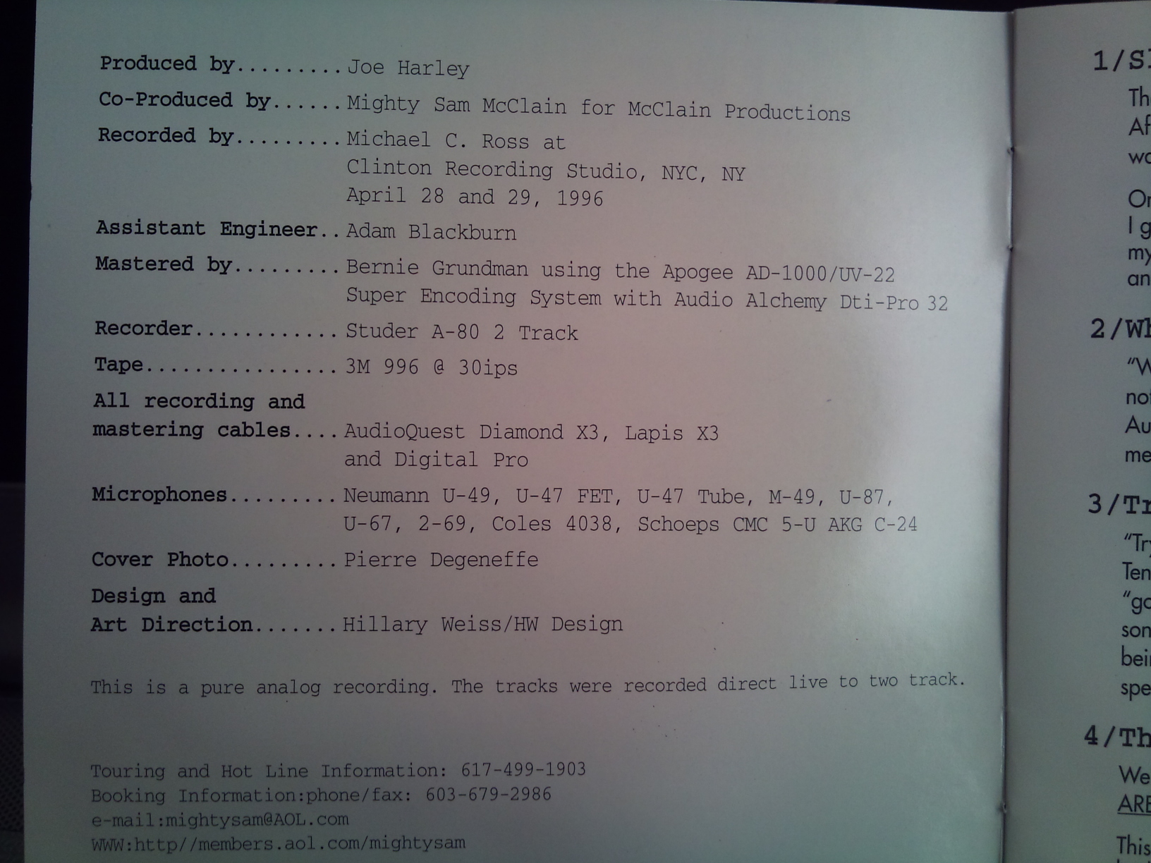 По поводу этих сказок, что мол на проф. студиях пользуются дешёвыми кабелями и всё такое, привожу пример: американмский диск джазового певца, в аннотации ниже написано как и чем( в том числе какими кабелями) записывалась данная фонограмма. |